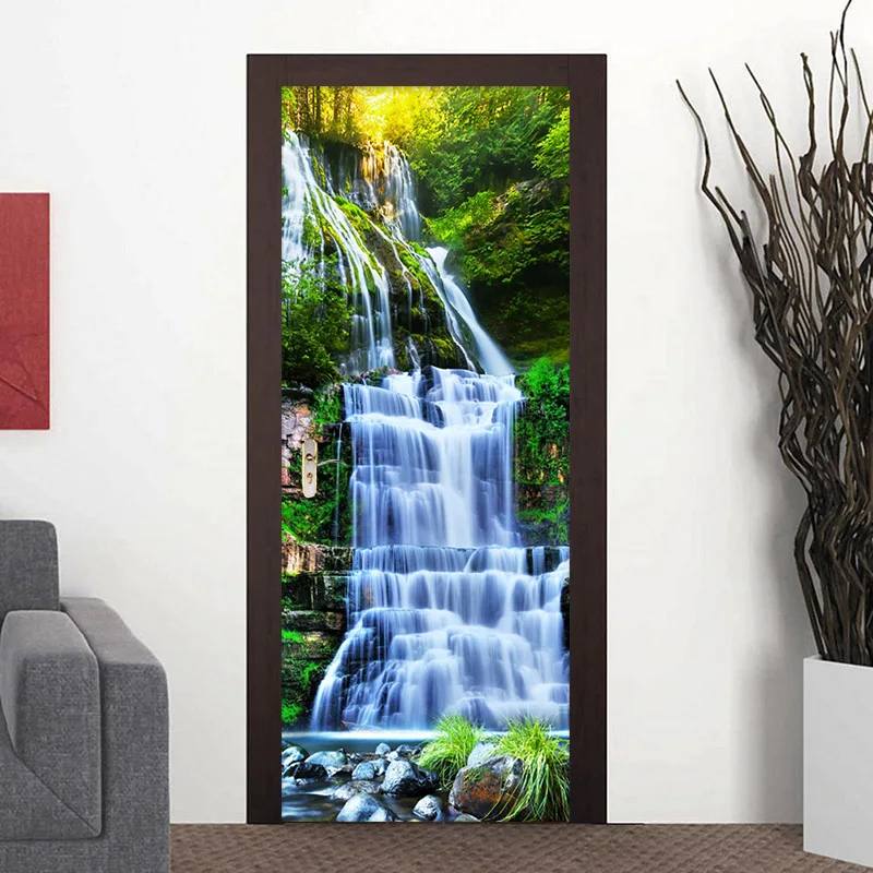 ПВХ водостойкая 3D наклейка на дверь, самоклеящиеся настенные наклейки сделай сам, фотообои 3D, дверные наклейки