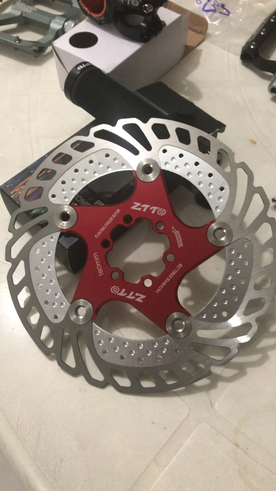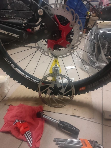 Роторы реально крутые, лёгкие и смотрятся суперски, но слегка кривые (уже исправил) и ещё один косяк - болтики были только к одному ротору, хоть я и заказывал два.
