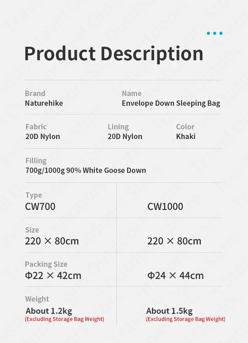 Спальный мешок Naturehike 750FP, цвет белыйгусиный пух, s NH18C400-D