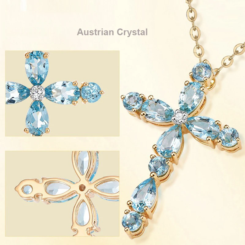 Женское ожерелье с подвеской-крестом из натурального голубого топаз...
