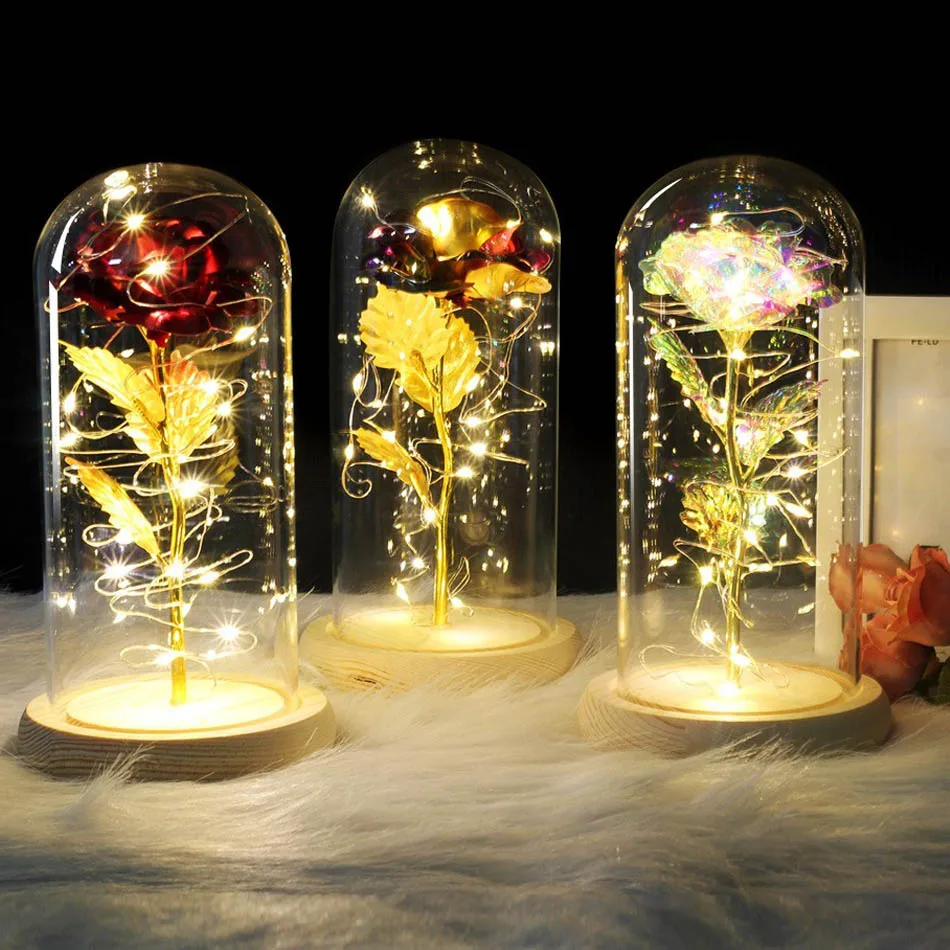 Свадебный банкет подарок на день матери стеклянный купол позолоченный Красавица и Чудовище красная роза Рождественское украшение Новый год День святого Валентина