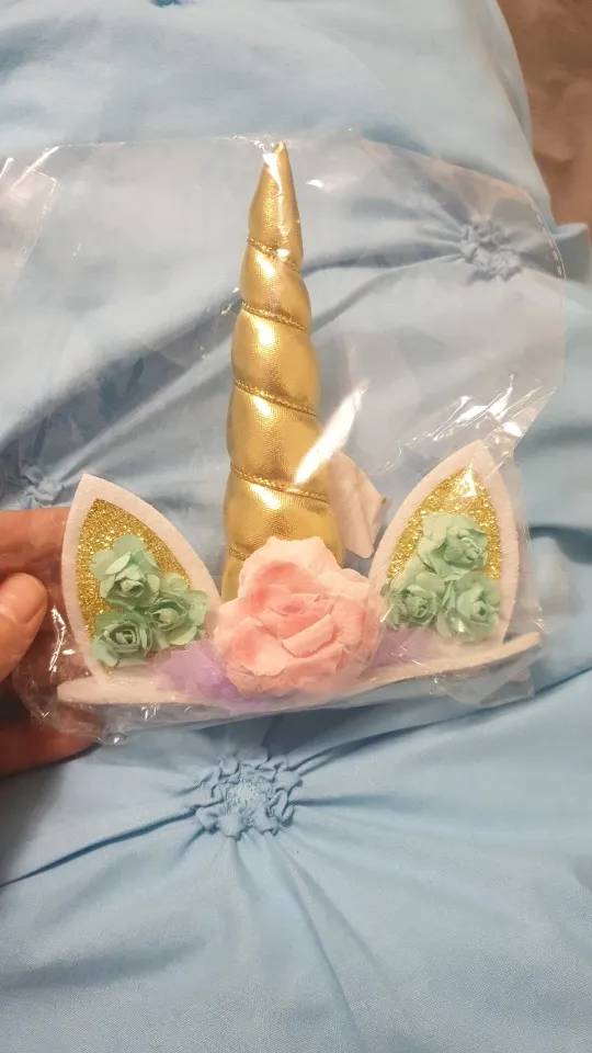 Головной убор в виде единорога.