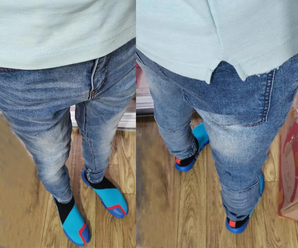 Джинсы-шаровары мужские стрейчевые, джоггеры свободного покроя, пов...