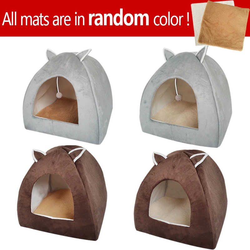 2-в-1, милая домашняя кровать для кошек, теплый маленький домик для кошек, собак, гнездо, складная кошачья пещера, спальные плюшевые коврики, мягкий домик для кошек