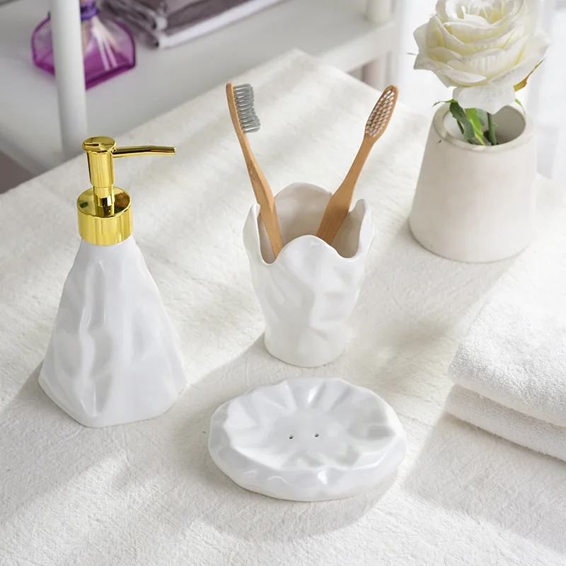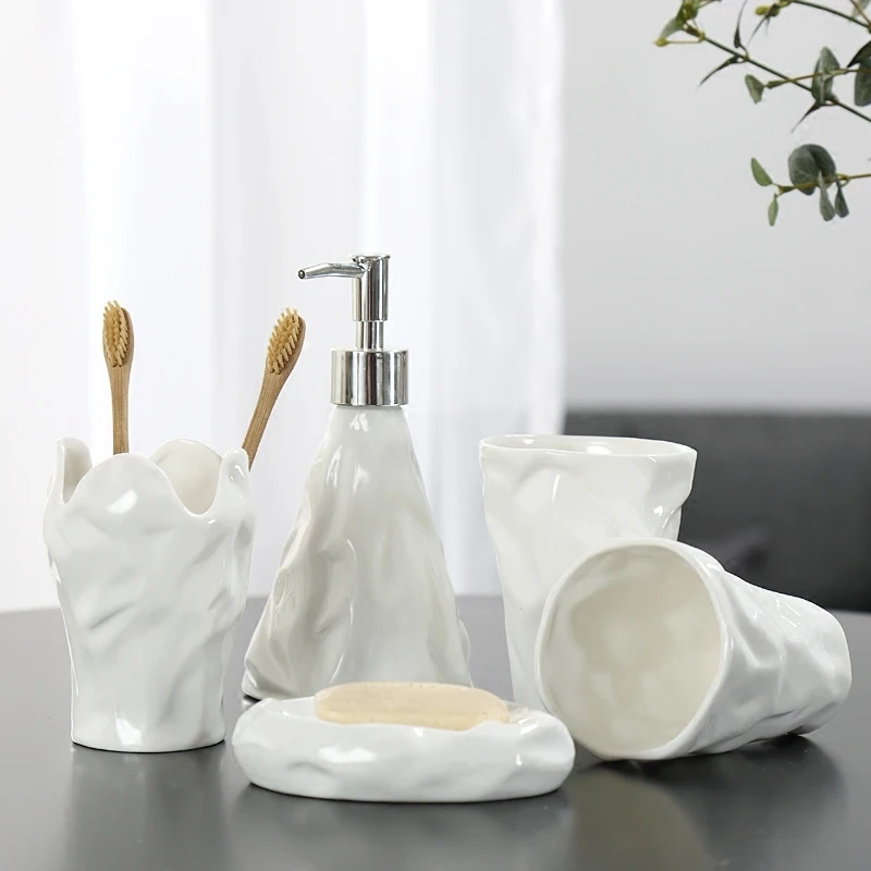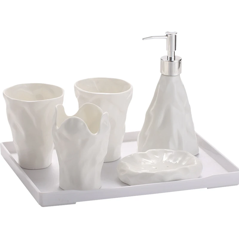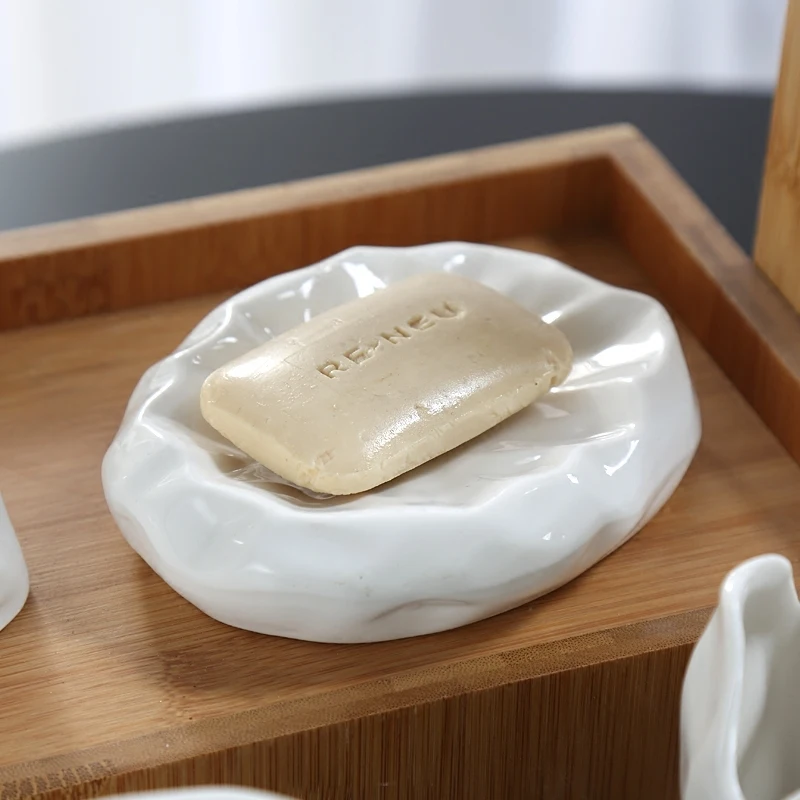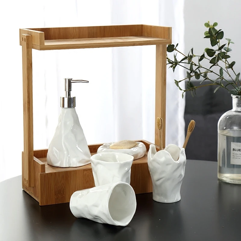 Высококачественный белый керамический набор для ванной комнаты, аксессуары с лотком, бамбуковое хранилище, чехол для зубной щетки, бесплатная доставка