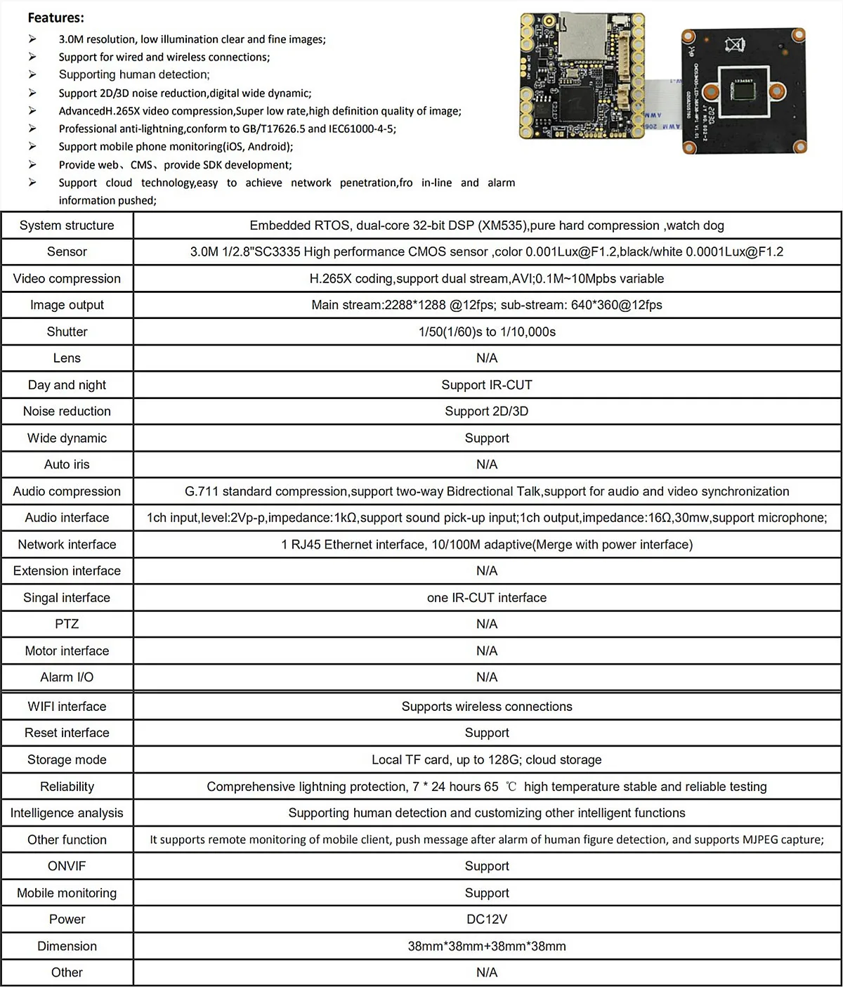 Беспроводная плата модуля IP-камеры 3MP XM530 + Q03 WIFI 2288*1288 поддержка SD-карты iCsee XMEYE CMS аудио P2P обнаружение движения, 4 шт.