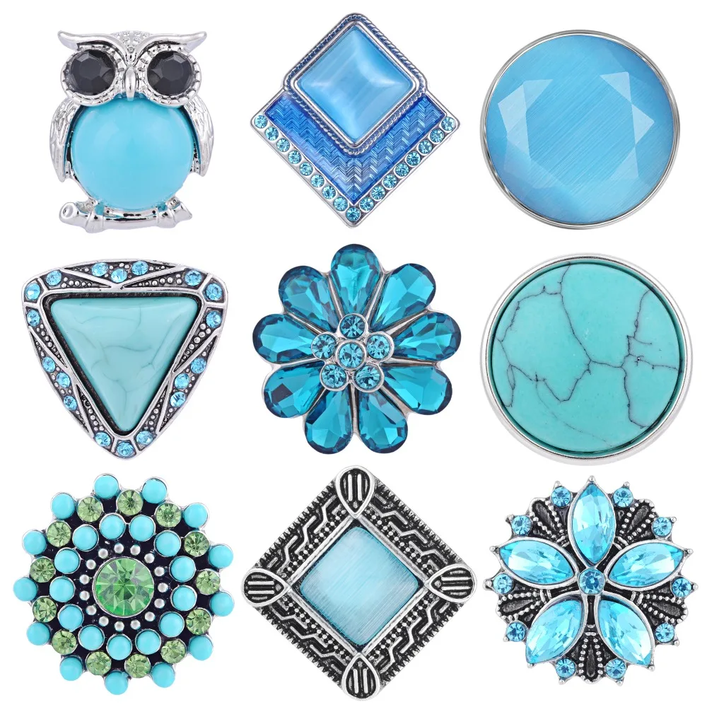 10 шт. новейшие стили озерно-голубые защелки Смешанная упаковка 18 мм защелки для пряников подвески для пуговиц ювелирные изделия VN-1981