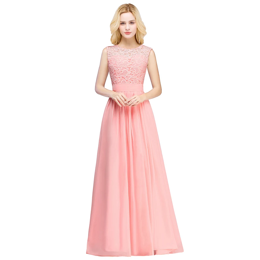 Розовые шифоновые длинные платья для подружек невесты, платье для г...