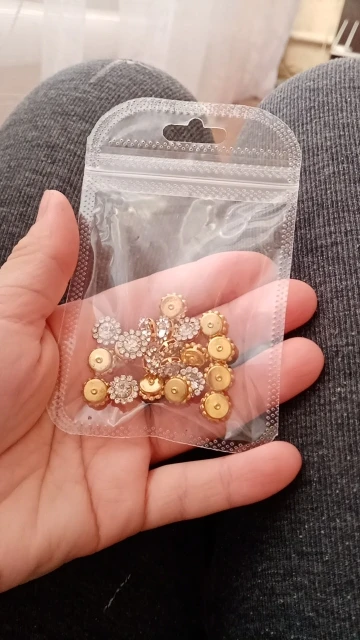 21 штучка в зипе с подарочком. Спасибо! Маленькие, но 12 мм есть. Брала раньше 14 мм, в общем-то разница видна, в основном в виде большего камушка в центре. Камушки акриловые. Можно пришивать. В целом вполне неплохо смотрится. Брала поближе сравнить с 14 мм и рассмотреть. Пока не определилась, они просто разные, и на бантах по разному смотрятся. В целом не разочавана, а это уже огромный плюс.