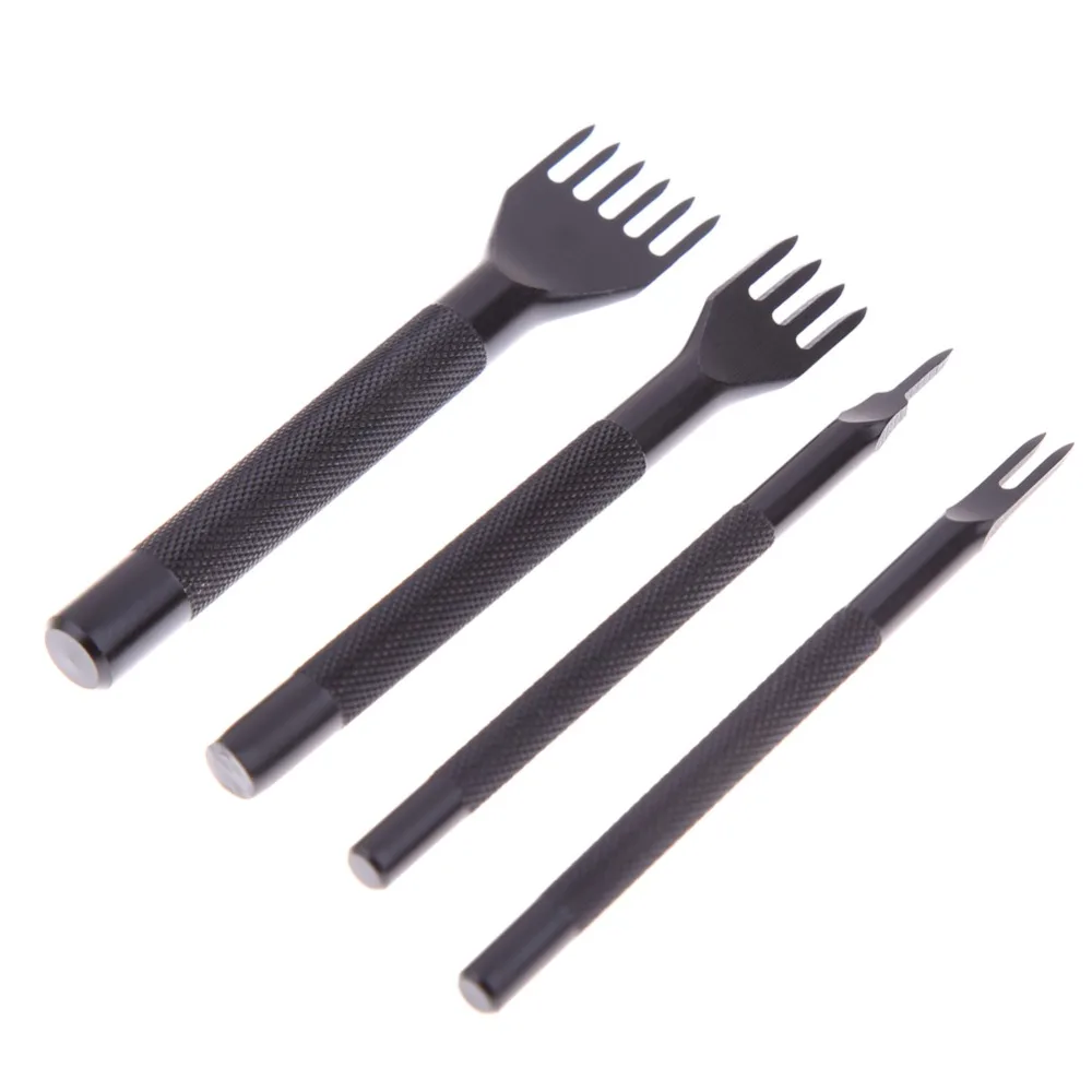 4 шт. инструменты для кожевенного ремесла, черные стальные дыроколы для кожи, 1 2 4 6 Зубцов, алмазное долото, DIY Инструменты для кожевенного ремесла