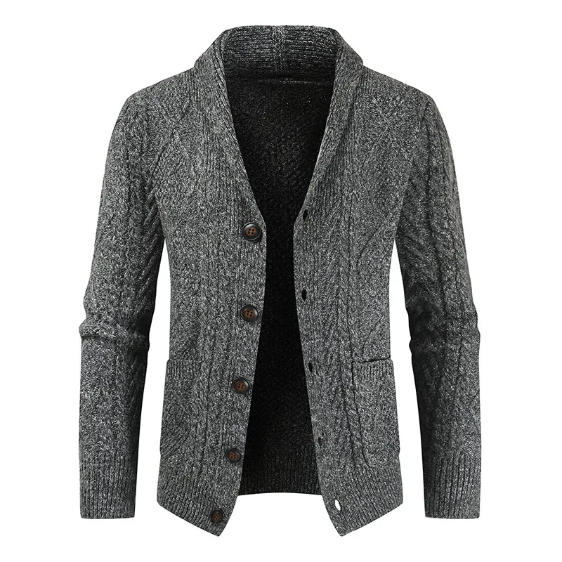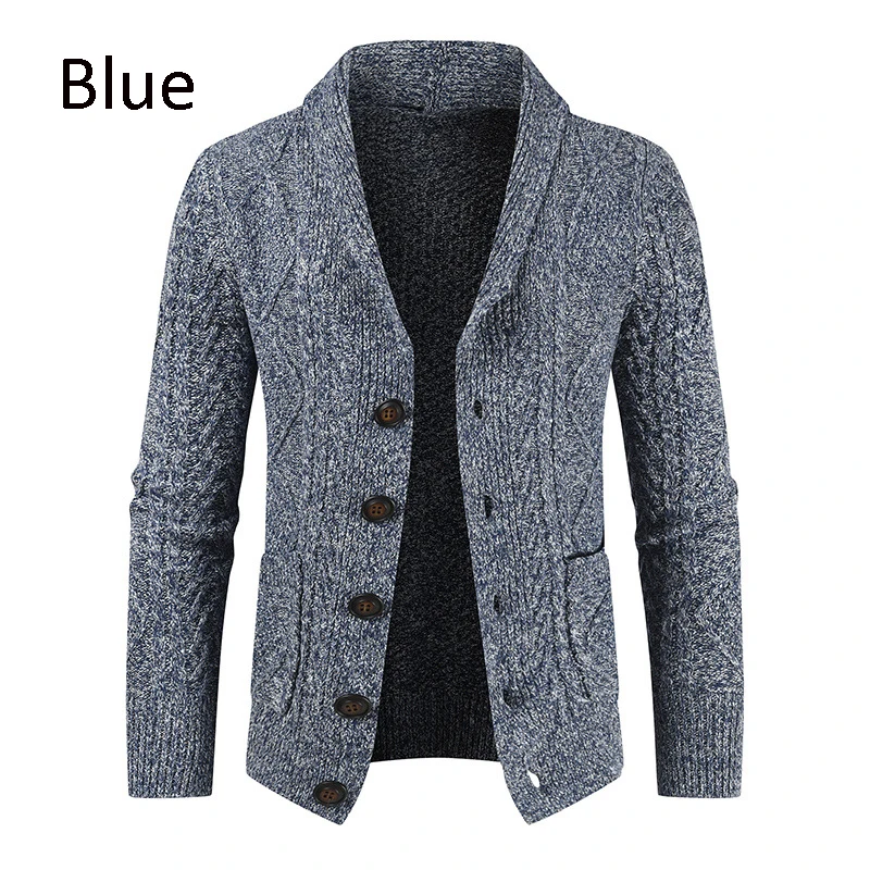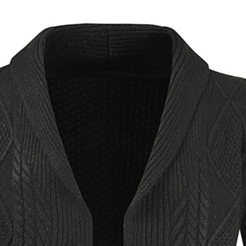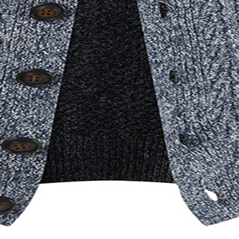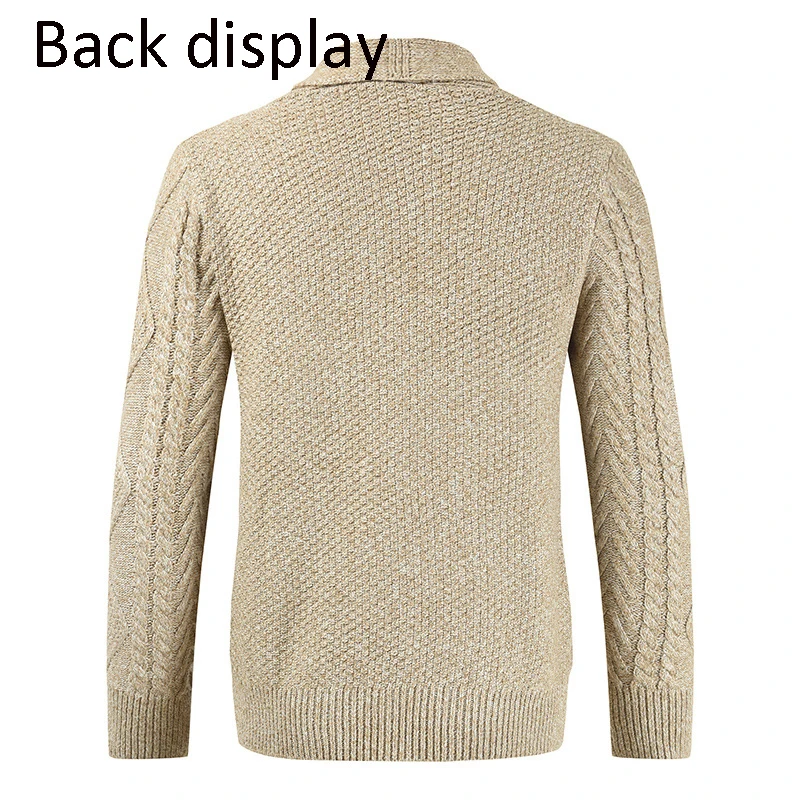 Мужской теплый кардиган, однотонный трикотажный кардиган с отворотом, Повседневный, приталенный, на пуговицах, черный, хаки