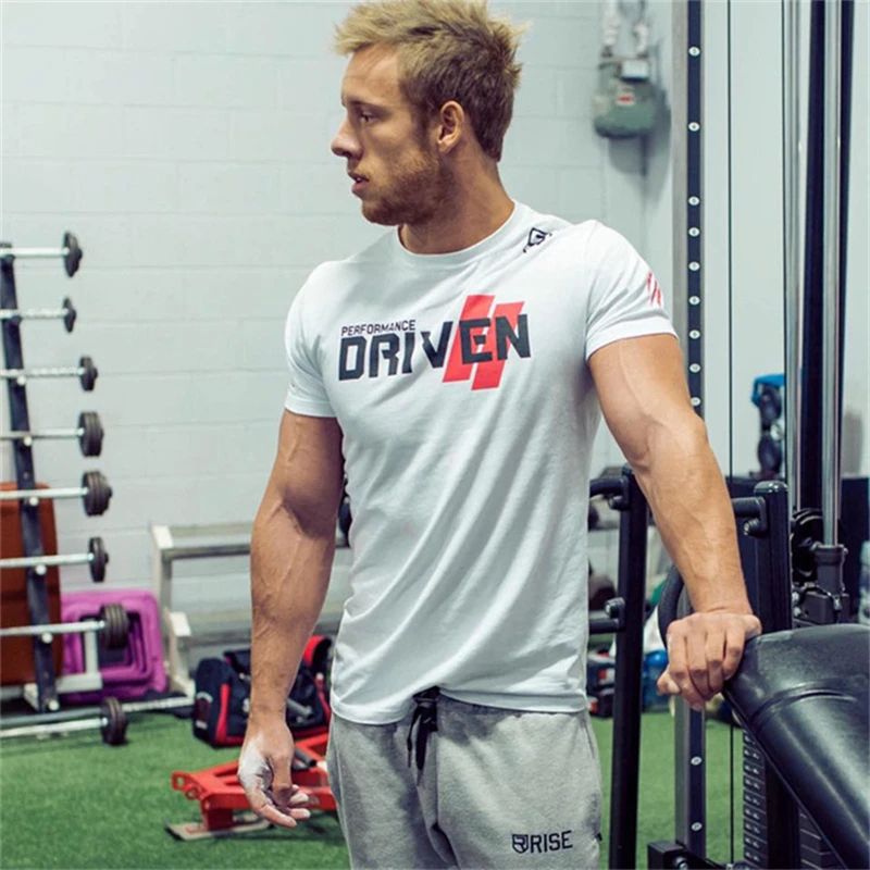 Мужская хлопковая футболка с принтом, Повседневная облегающая футболка для спортзала, фитнеса, бодибилдинга, кроссфита, одежда для лета, 2022