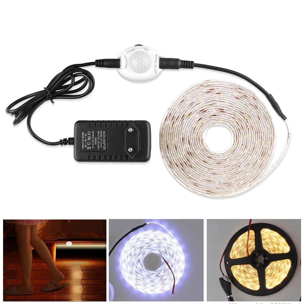Новый ночник с пассивным инфракрасным датчиком движения и управлением светом, водонепроницаемая светодиодная лента IP65 2835 SMD 12 в 1 м 5 м для кухни, кабинета, спальни и т. д.