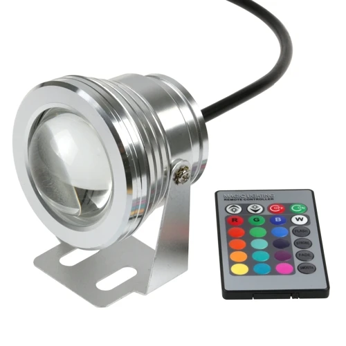 Подводный RGB светодиодный светильник 10 Вт, 12 В, 1000 лм, водонепроницаемый, IP65, лампа для фонтанов, бассейнов, аквариумов, 16 меняющихся цветов, 24 клавиши, ИК-пульт дистанционного управления