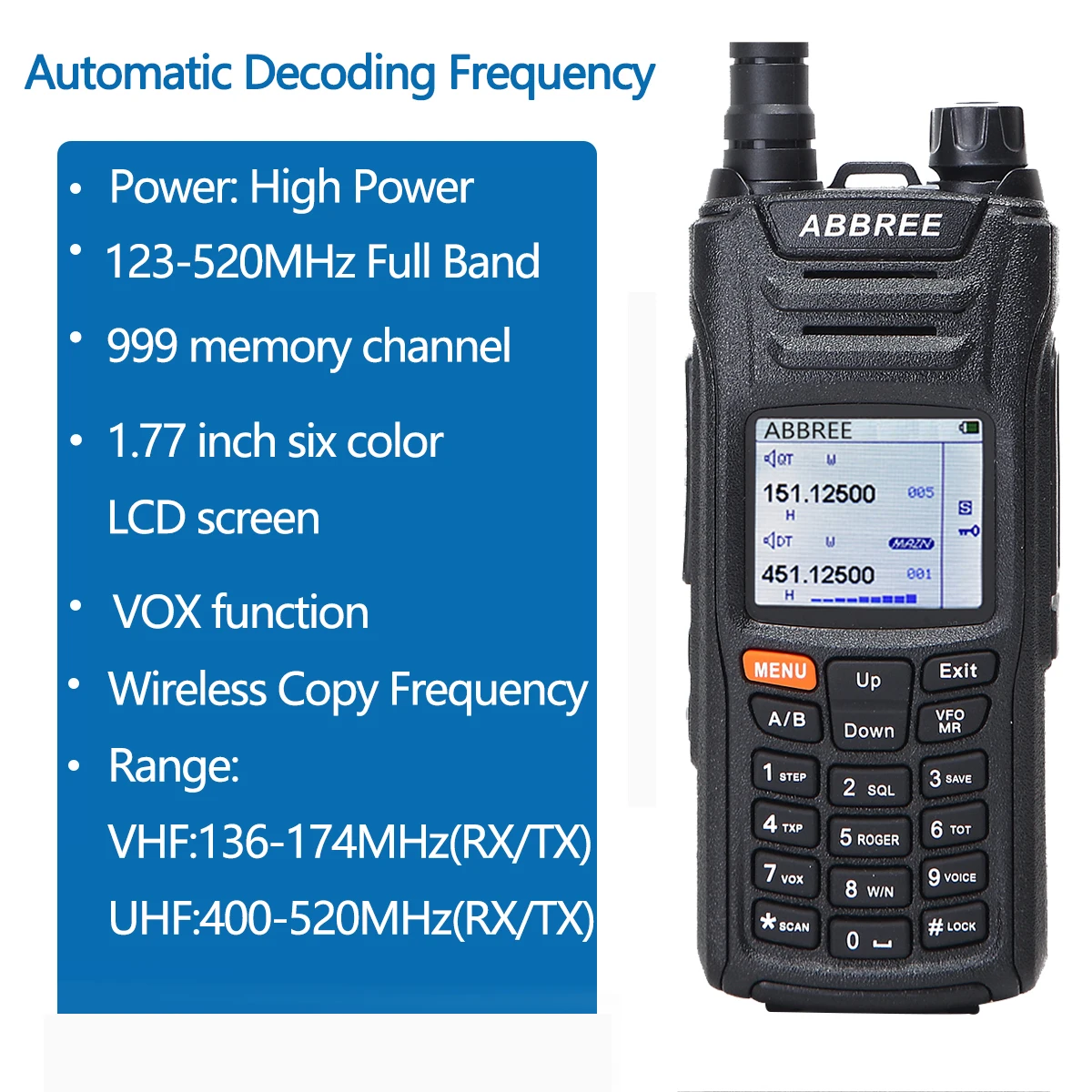 ABBREE Автоматическая копия частоты Walkie Talkie 123-520mhz полный диапазон 999CH VOX SOS ЖК-дисплей радио + микрофон динамика