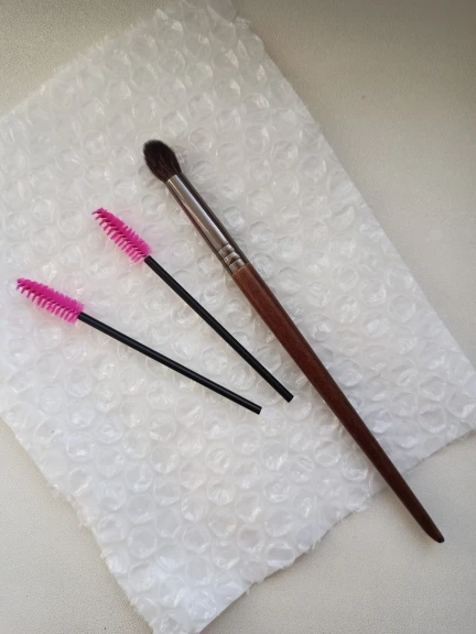 Кисточка супер! Очень мягкая, широкая и хорошо справляется с растушёвкой. Продавец положил ещё две щеточки в подарок. Упакована кисть была хорошо в большой пакет