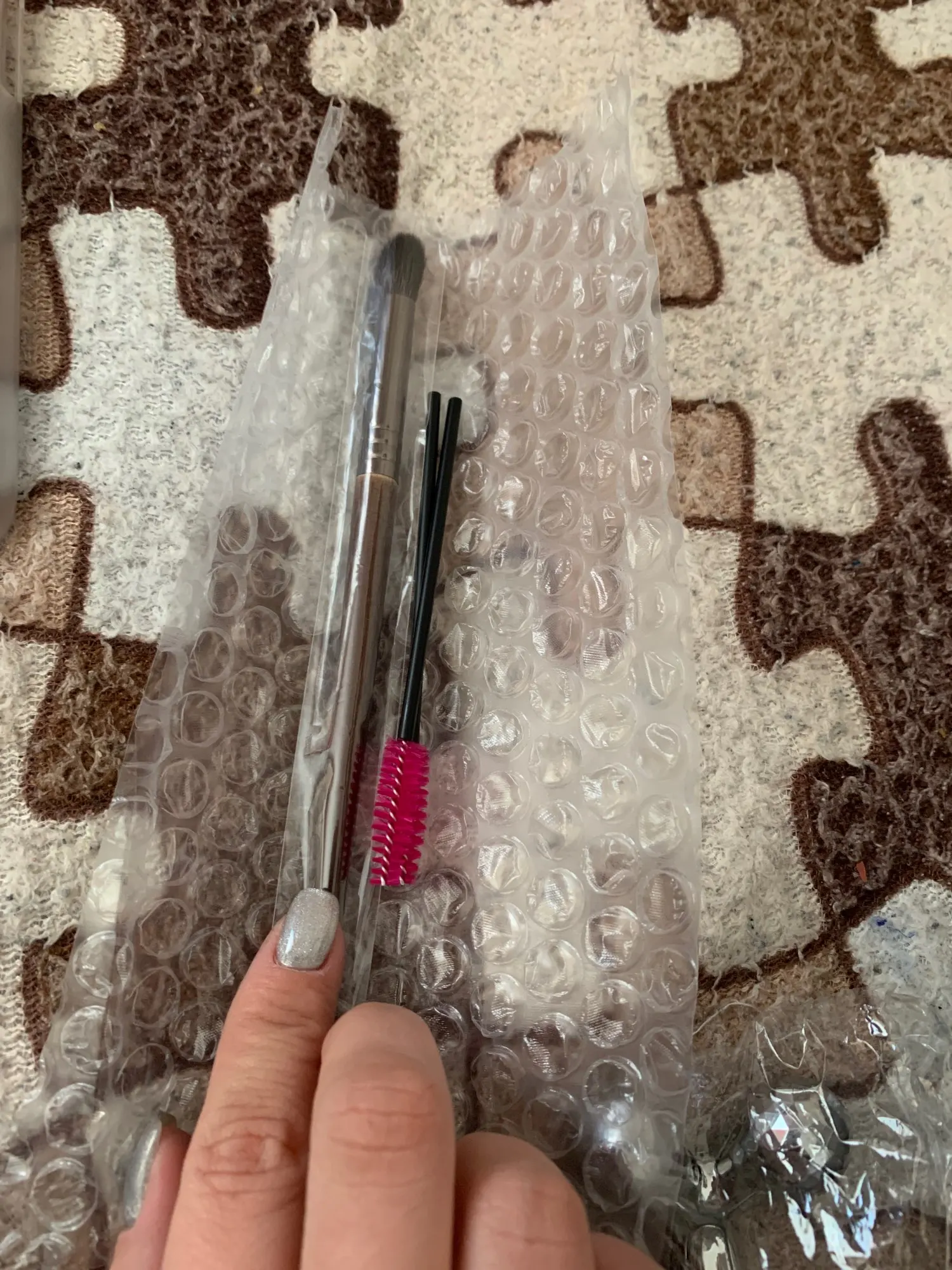 Прибыло через 25 дней. Хорошо упаковано в пленку, которая также входит в комплект Очень мягкая кисть, щетинки выглядят хорошо. Чтобы вовремя оценить, если вы потеряете мягкость или если потеряете щетину. Я был отправлен также два pettinini для ресниц/бровей розовый. Я ценю идею продавца