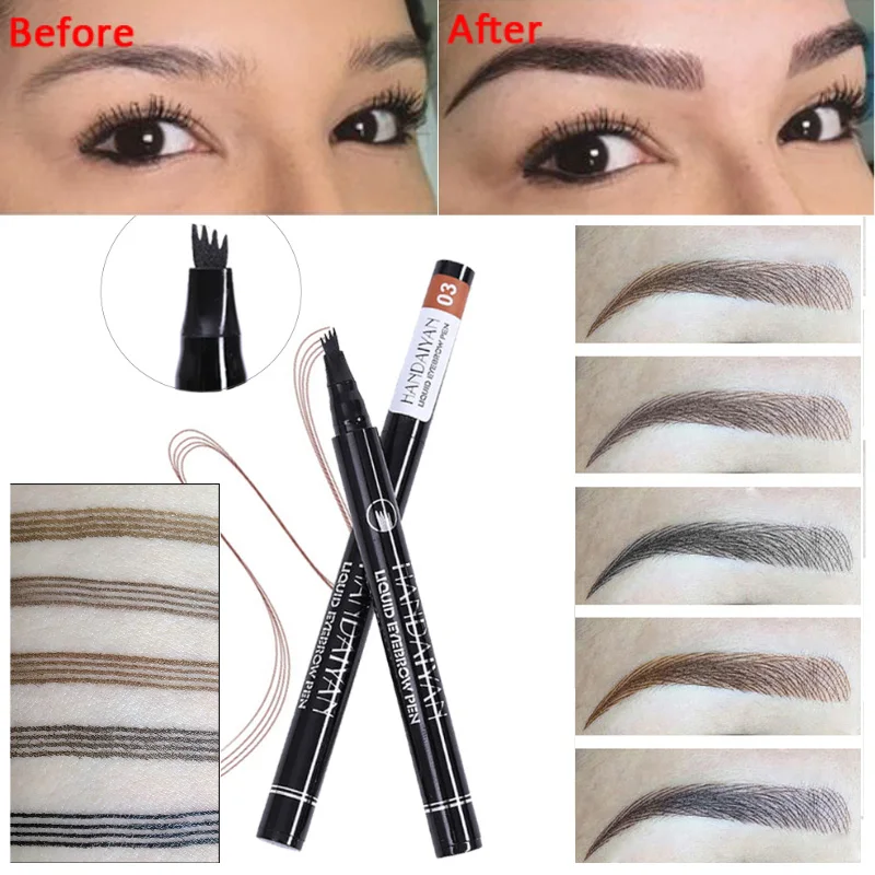HANDAIYAN брови 4 вилка микро-резьба жидкий карандаш для бровей черный коричневый водонепроницаемый оттенок глаз бровей Тату ручка для увеличения бровей