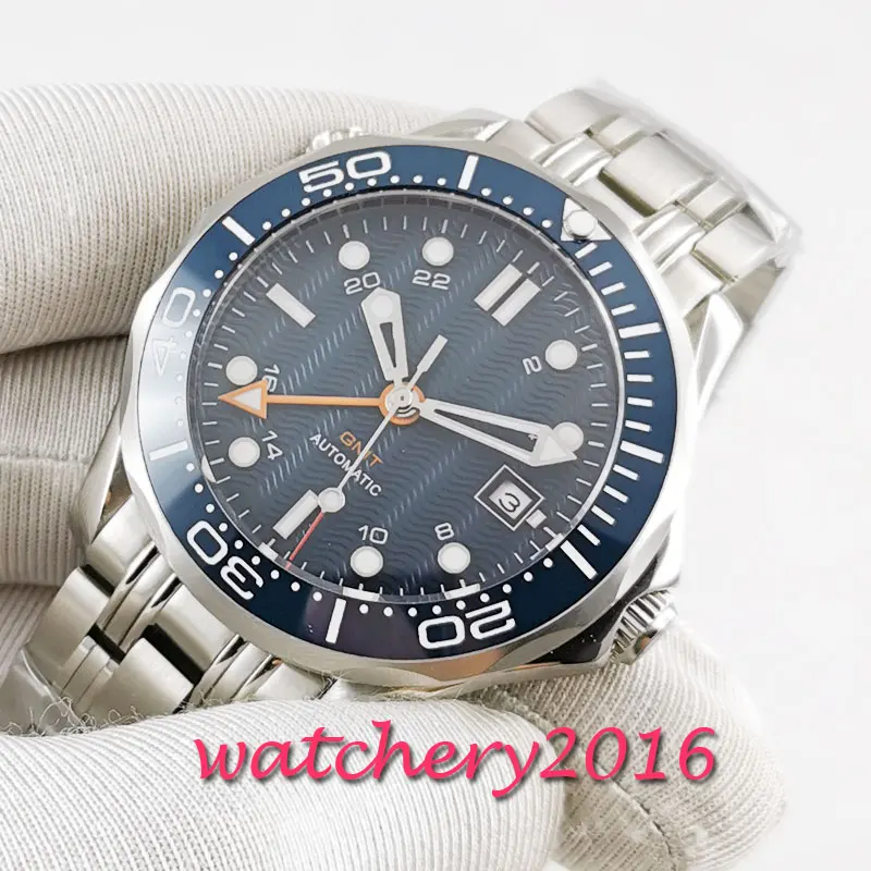 Часы мужские наручные в стиле милитари, брендовые автоматические, с синим циферблатом, с сапфировым стеклом, 41 мм