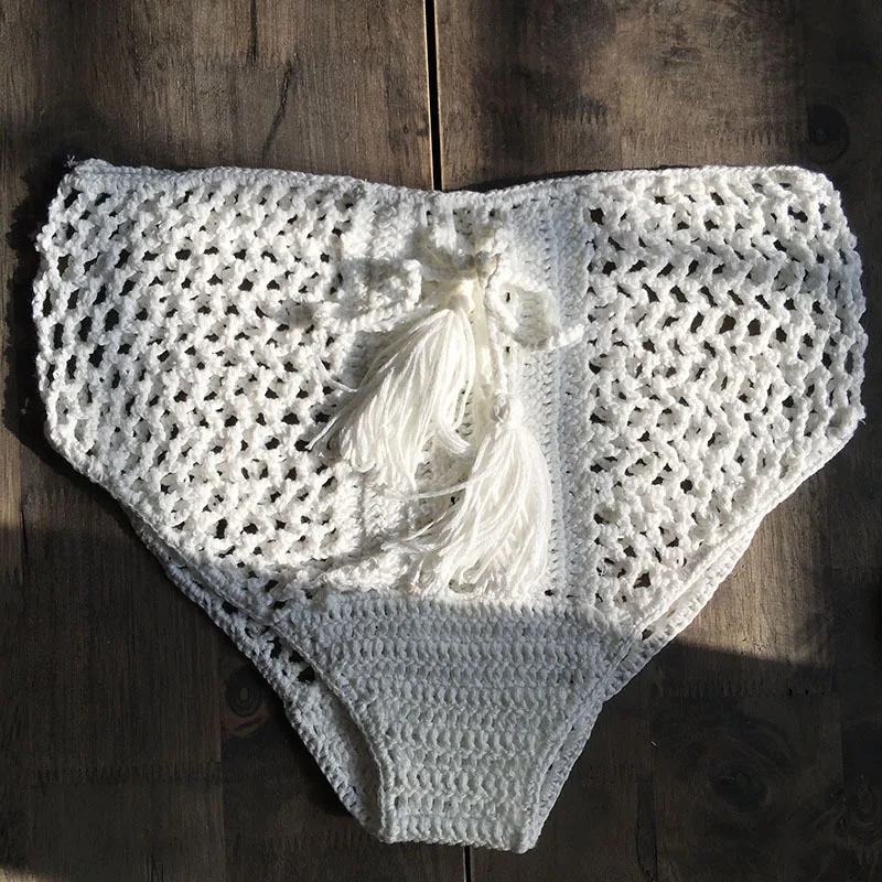 Женские сексуальные трусики бикини с высокой талией, одежда для плавания, черные, белые хлопковые вязаные крючком ажурные бандажные женские купальные трусы