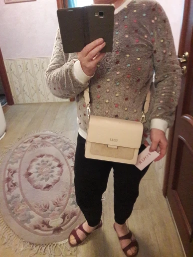 Сумка выше всяких похвал. Особенно то что она из спилка и ваша на распродажу в 1300р. Доставка с России IML отличная за 6 дней курьером. Размер могу любимый. Для маленького кошелька, пакета и телефона с ключами, больше ничего не надо. Жалею, что красную ещё не взяла)