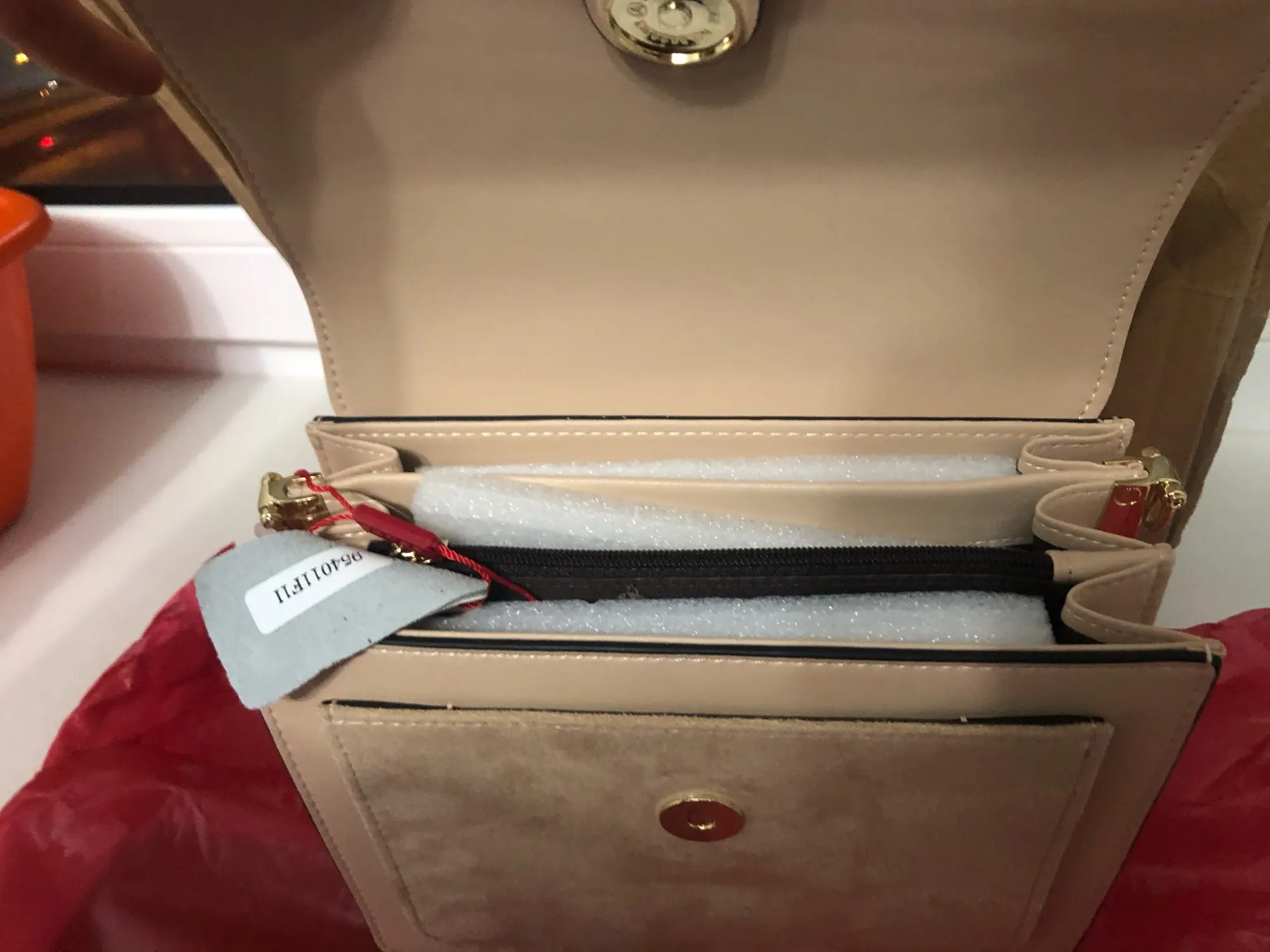 заказала 11.11.2020 получила 29.12.2020, упакована в картонную коробку, в пыльник, внутри отделения приоложены пупыркой. Первые впечатления, маленькая, аккуратная. Но рассмотрела нашлись не рвные строчки на ремешке . Вставка из материала похожая на бархатистую замшу по акции обошлась чуть больше 17 евро. За эти деньги нормально . Рекомендую к покупке .