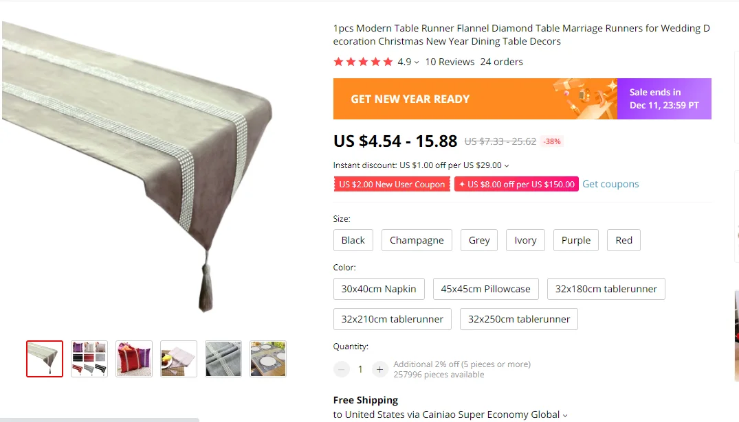 Страна: Color: 32x180cm tablerunner Size: Black Доставка: Standard Shipping 10.11.2022