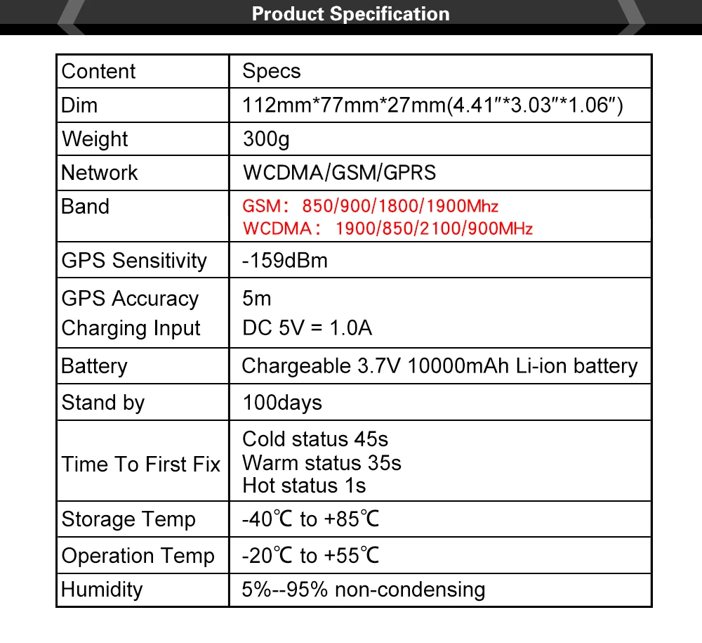 1. Наш TK915 может работать с сетью 3G WCDMA. Поддержка HSDPA/UMTS/EDGE/GPRS/GSM 850/900/1900/2100 МГц