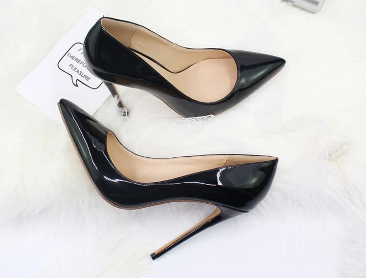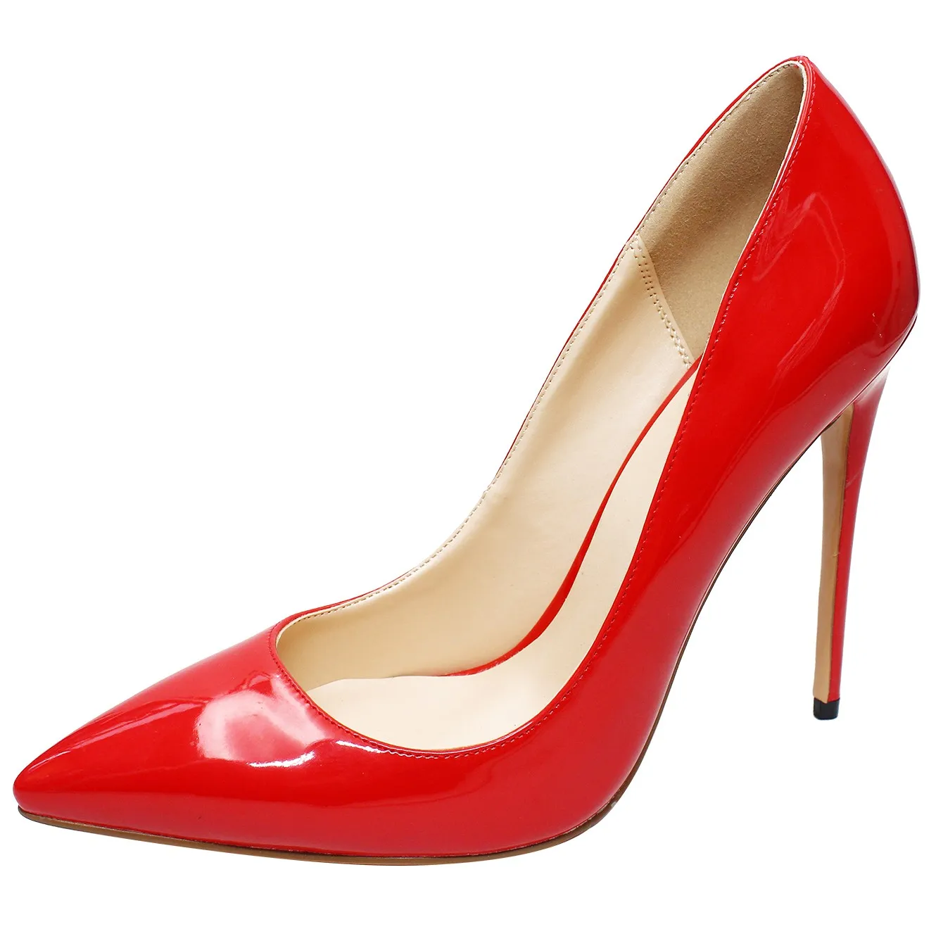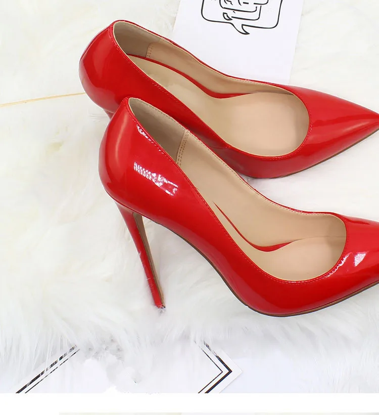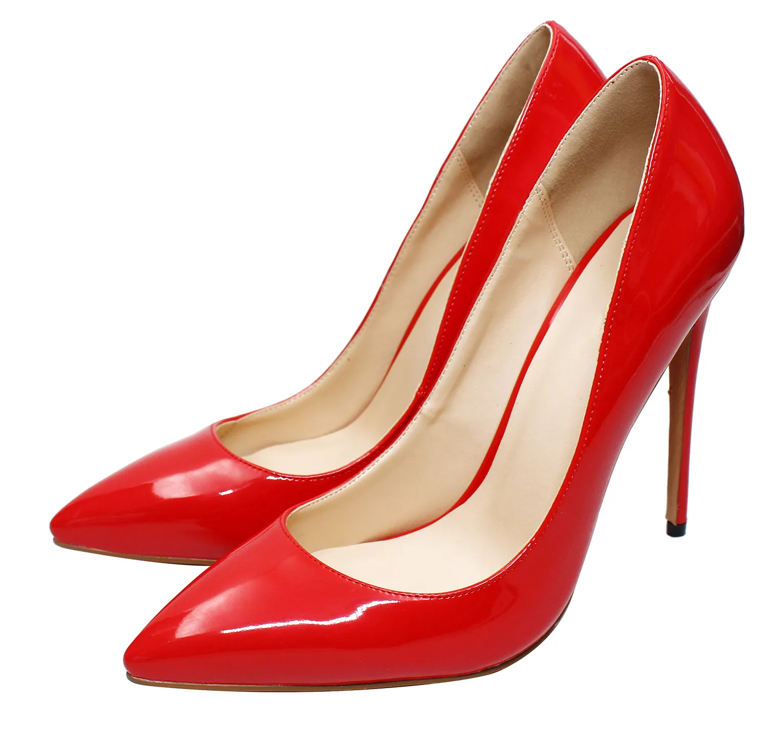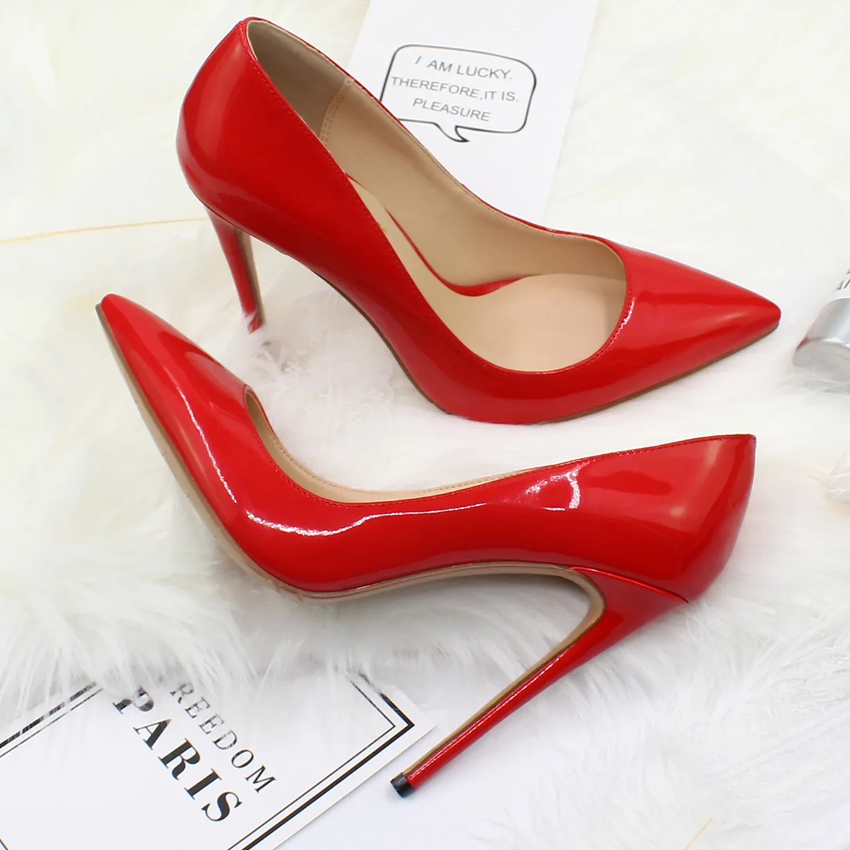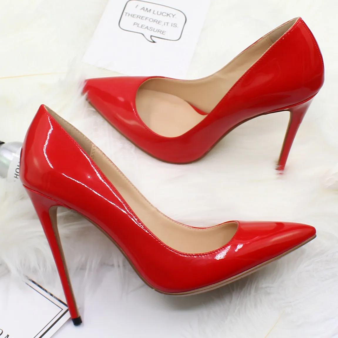 Женская новая однотонная Рабочая обувь черного цвета с острым носком на высоком каблуке красные свадебные туфли-лодочки из лакированной кожи большого размера