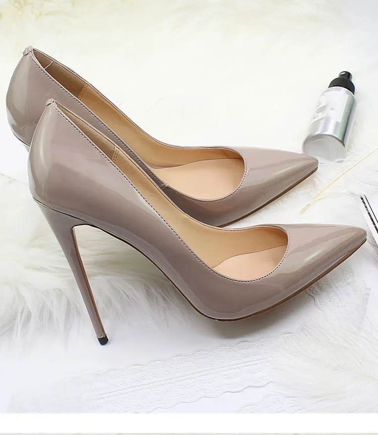 Mature Women Nude Black Purple Red Wedding bridal Patent Leather Pointed Toe PumpsStiletto High Heels 12cm Banquet Shoes