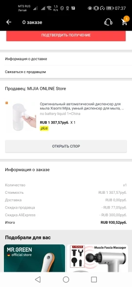 Доставка очень быстрая, раньше предполагаемого срока. Диспенсер работает даже с простыми батарейками, но с мылом пока не проверяла. Будем "допиливать" (делать отверстие для заливки мыла), т.к крышка слабовата. В целом довольна, давно хотела его приобрести