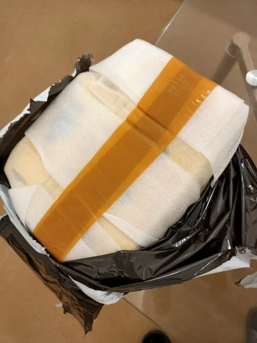 Пришло быстро. Упаковка пупырка. Товар поврежден. Смят. Попробую нагреть феном и выпрямить. Может почта виновата...