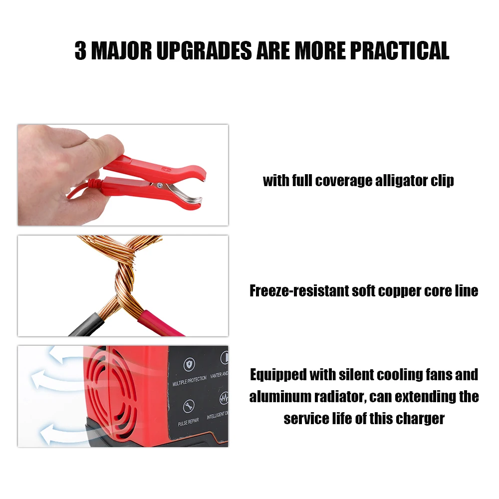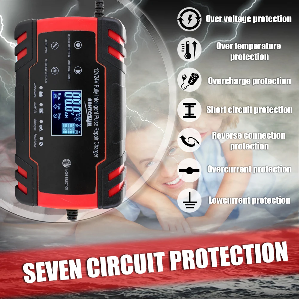 Особенности:Защита от перенапряжения, защита от перегрева, защита от перезаряда, защита от короткого замыкания, защита от обратного соединения, защита от перегрузки по току, защита от низкого тока.Это полностью автоматическое зарядное устройство с 3 этапами зарядки, постоянной текущей зарядкой, постоянной зарядкой напряжения, поплавковой зарядкой.С летним и зимним режимом и может обнаруживать температуру, и он автоматически переключается на соответствующее напряжение.Оснащен бесшумными вентиляторами охлаждения и алюминиевым радиатором, может продлить срок службы этого зарядного устройства.Одна кнопка для восстановления и активации, очень удобно.Управление микропроцессором (CPU) для экономии и быстрой зарядки вашего аккумулятора!ЖК-цифровой дисплей напряжение, ток, температура, емкость батареи в режиме реального времени, удобно читать.Внешний материал изготовлен из огнезащитного материала ABS, теплоизоляция, огнестойкость, высокая температура.Стойкая к замораживанию мягкая медная сердечник, с полным покрытием Аллигатор клип, soild и практичный.Трансформатор из чистой меди, стабильный выход, высокая скорость преобразования, энергосбережение, большая емкость и т. д.Автоматическая зарядка защищает ваш аккумулятор от перезарядки, поэтому вы можете оставить зарядное устройство, подключенное к батарее на неопределенный срок.Они также могут помочь восстановить сливные и сульфированные батареи.Типы батарей: большинство типов свинцово-кислотных батарей, включая кальций, гель и AGM, влажные, EFB и т. Д.Примечание: не может использоваться для зарядки литиевой батареи.