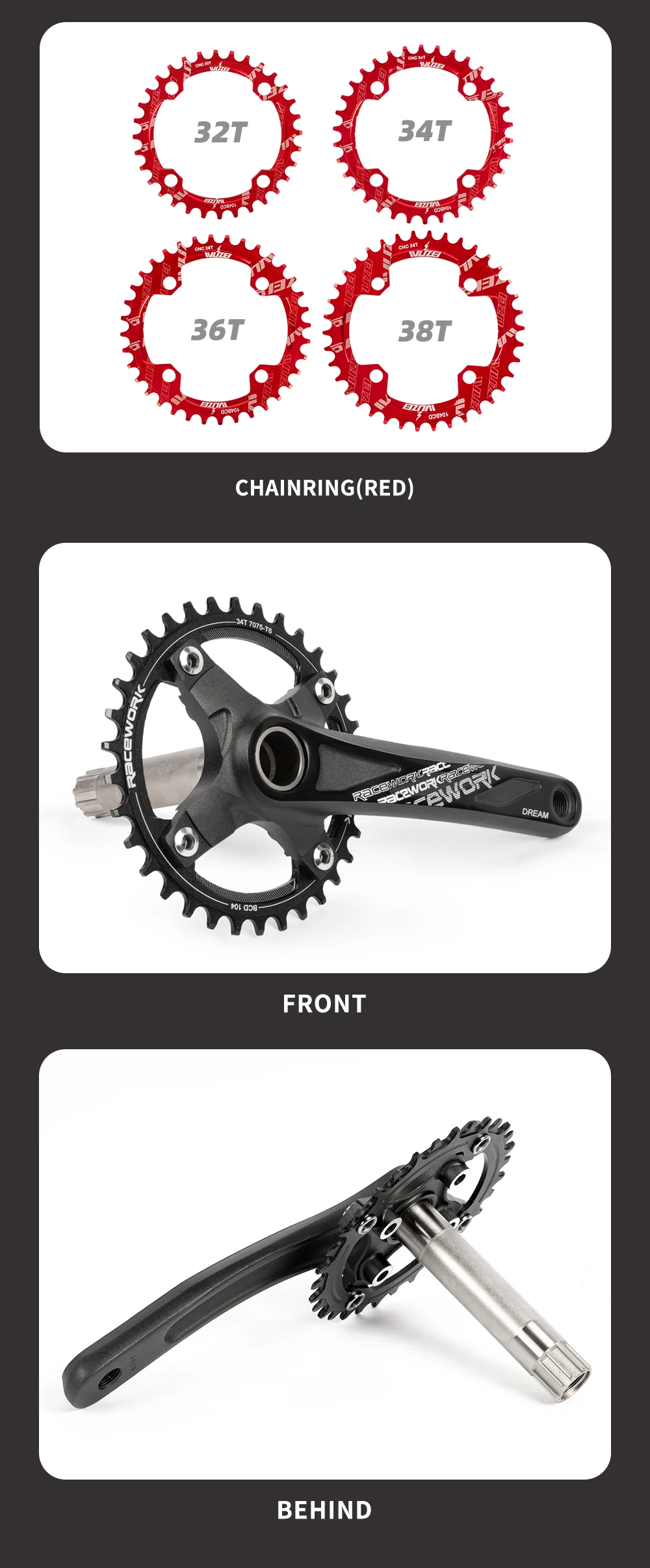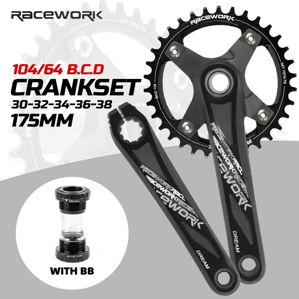 Racework велосипедный коленчатый набор 104BCD MTB горный велосипед алюминиевый сплав с нижним кронштейном Корона 175 мм 32 т 34 Т 36 т 38 т пластина