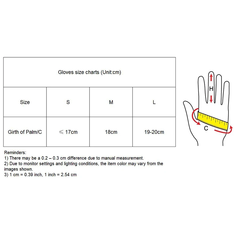 Размер: S, маленький, подходит для ношения в пределах 17 см от ладони M, medium, подходит для ладоней около 18 см L, большой, подходит для окружности ладони 19-20 см Длина ладони модели составляет 19 см, код M немного туго, а код L подходит.