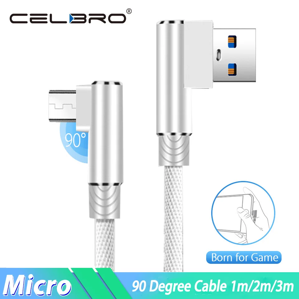 Кабель Micro Usb 2,4 А с углом 90 градусов, кабель для быстрой зарядки Micro-usb 3 м 2 м, Micro Usb для Xiaomi Redmi 7 7A Huawei Y8sY6pY5p