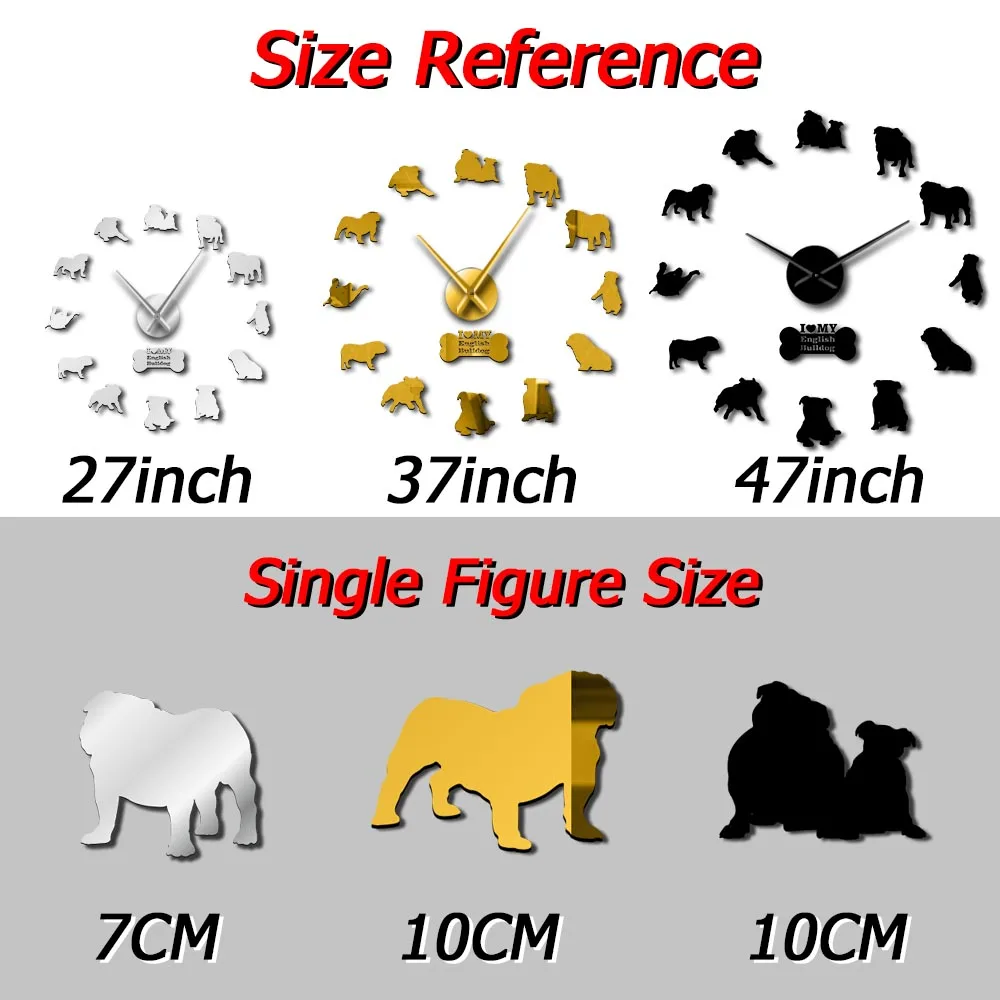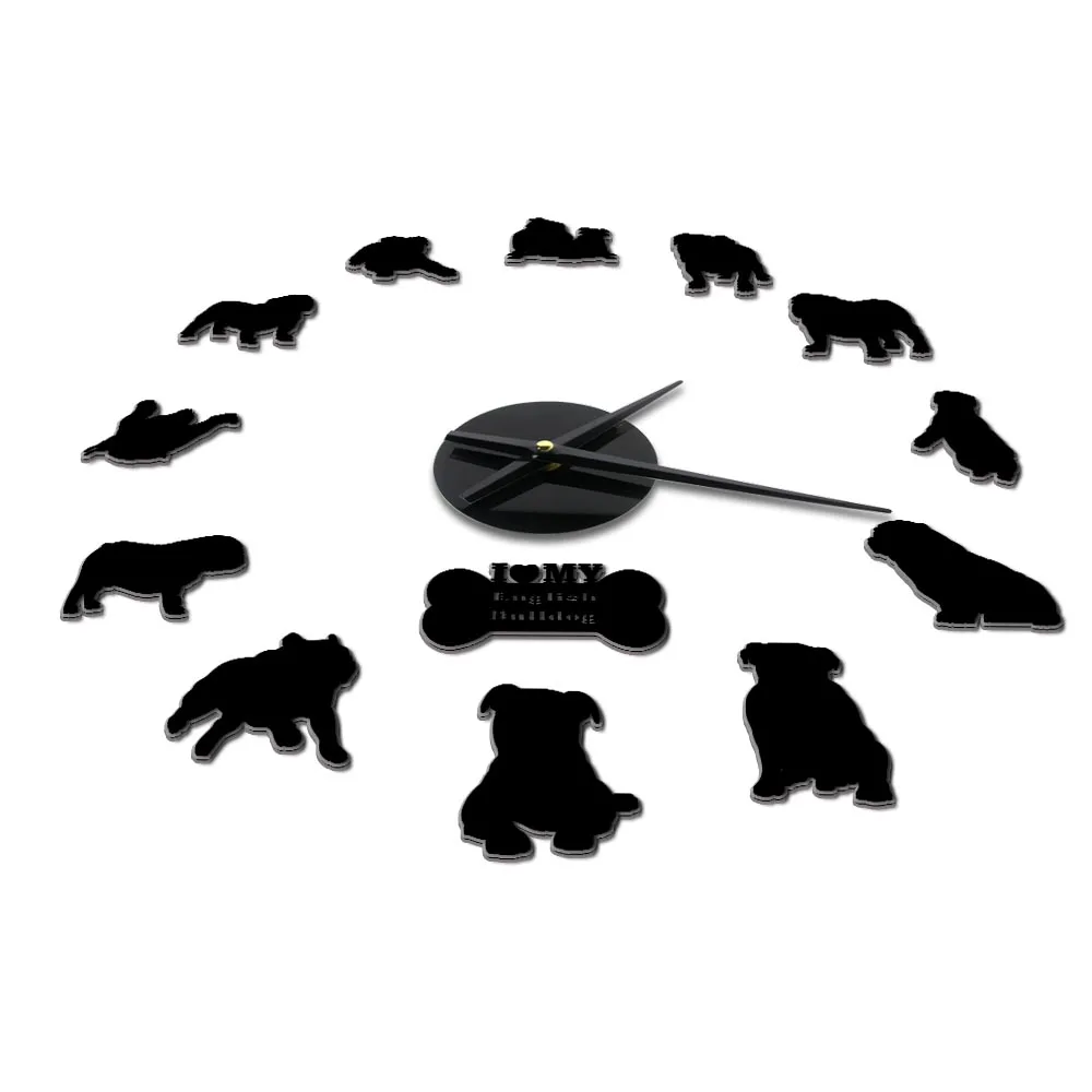 3d-часы с изображением английского бульдога, современные настенные часы сделай сам с милыми костяшками, британский Бульдог, собака, порода, зоомагазин, зеркало, часы с поверхностью