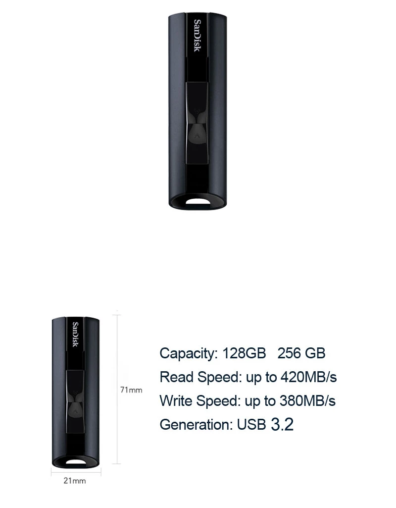 SanDisk Extreme PRO USB 3,2 Gen 1 твердотельный флеш-накопитель 128 ГБ 256 ГБ флеш-накопитель Флешка память Usb флешка скорость записи до 380 м
