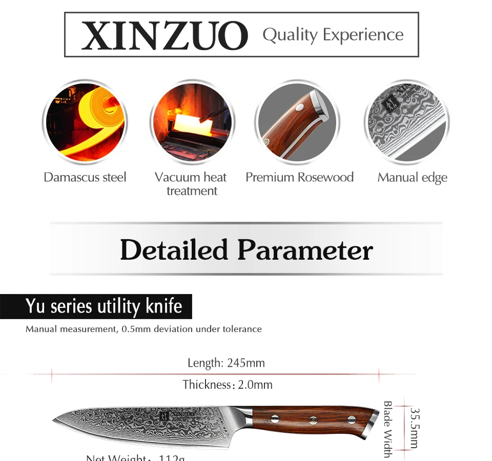 XINZUO 5-дюймовый нож для стейка, лезвие из высокоуглеродистой дама...
