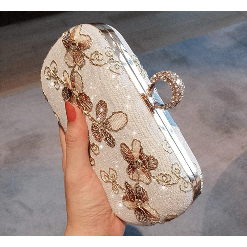 Винтажная Женская сумочка, стразы, сумки для женщин 2018, вечерние сумки с вышивкой и кольцами, сумка на плечо для свадебных торжеств и свадебных торжеств