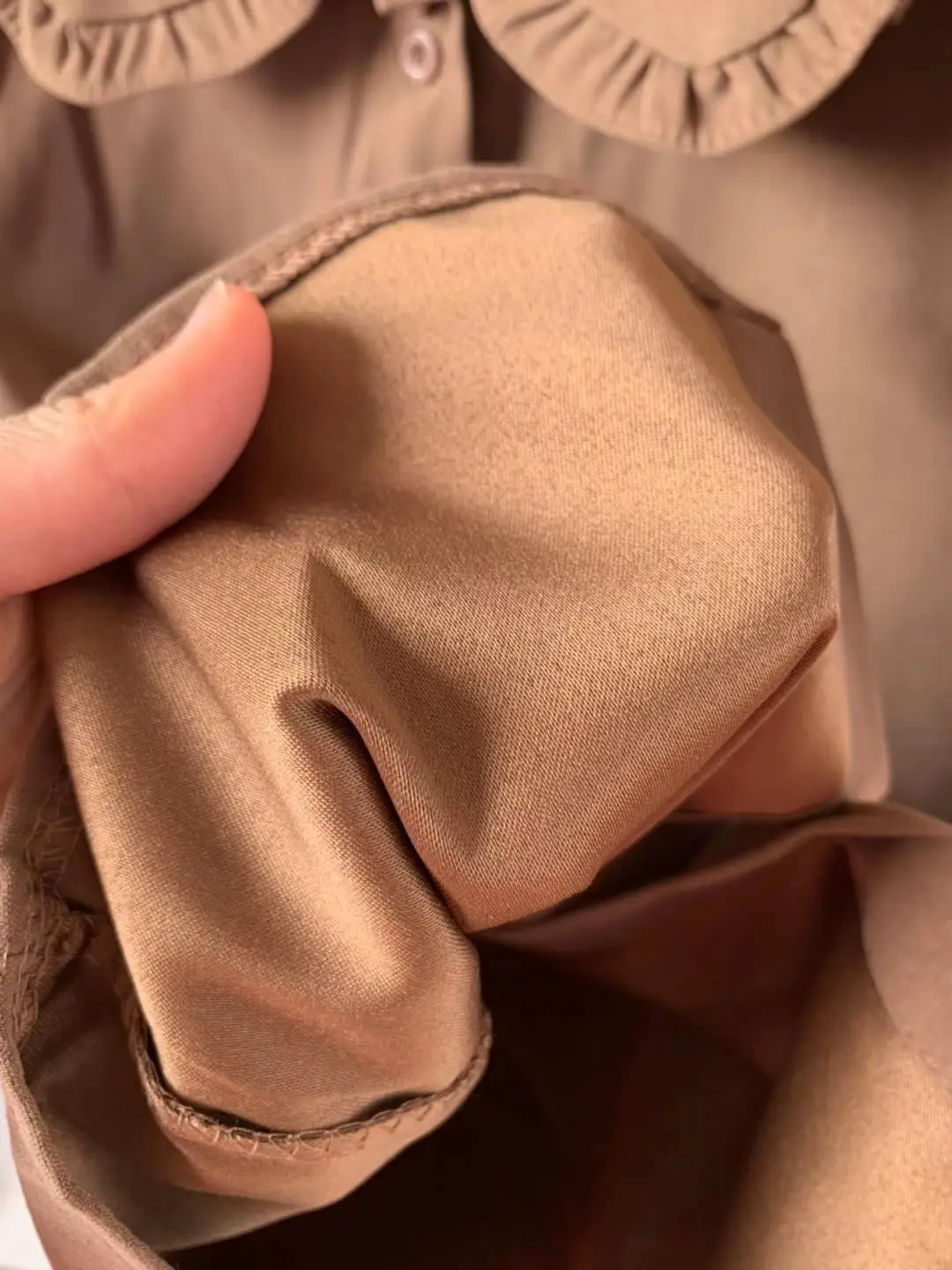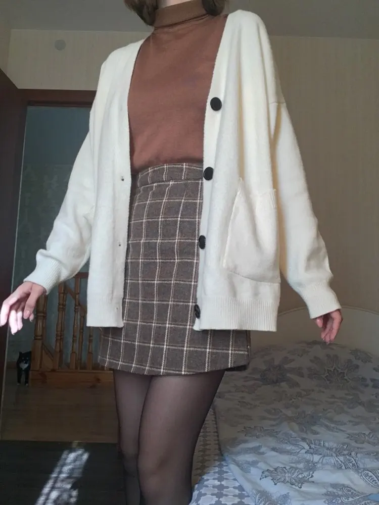 Очень хорошее качество, теплая ткань. Выглядит красиво, хотя рукава могут быть немного короткими. Идеально подходит для осени.
