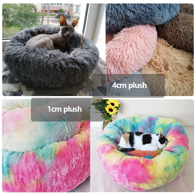 Круглая кровать для собаки в форме пончика собачка Подушка Мягкие Длинные носки против скольжения, плюшевые, домашние коробка для яиц из щенков корзина для домашних животных теплые коврик уютная Подушка животных диван