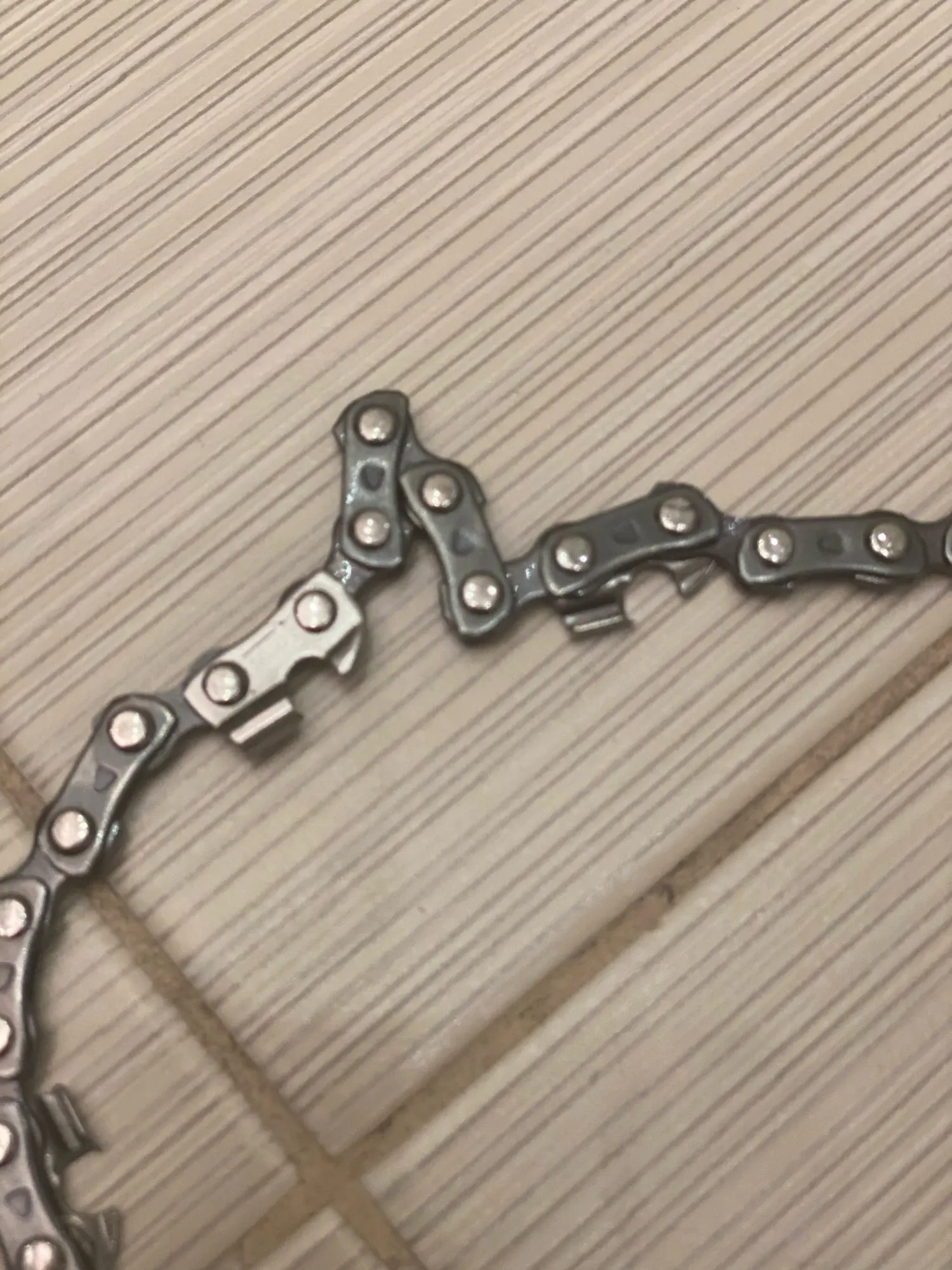 Товар плохой ! Первый сантиметр пилит хорошо потом начинает застревать из за того что пин который соединяет звенья больше отверстия которое пропиливает пила