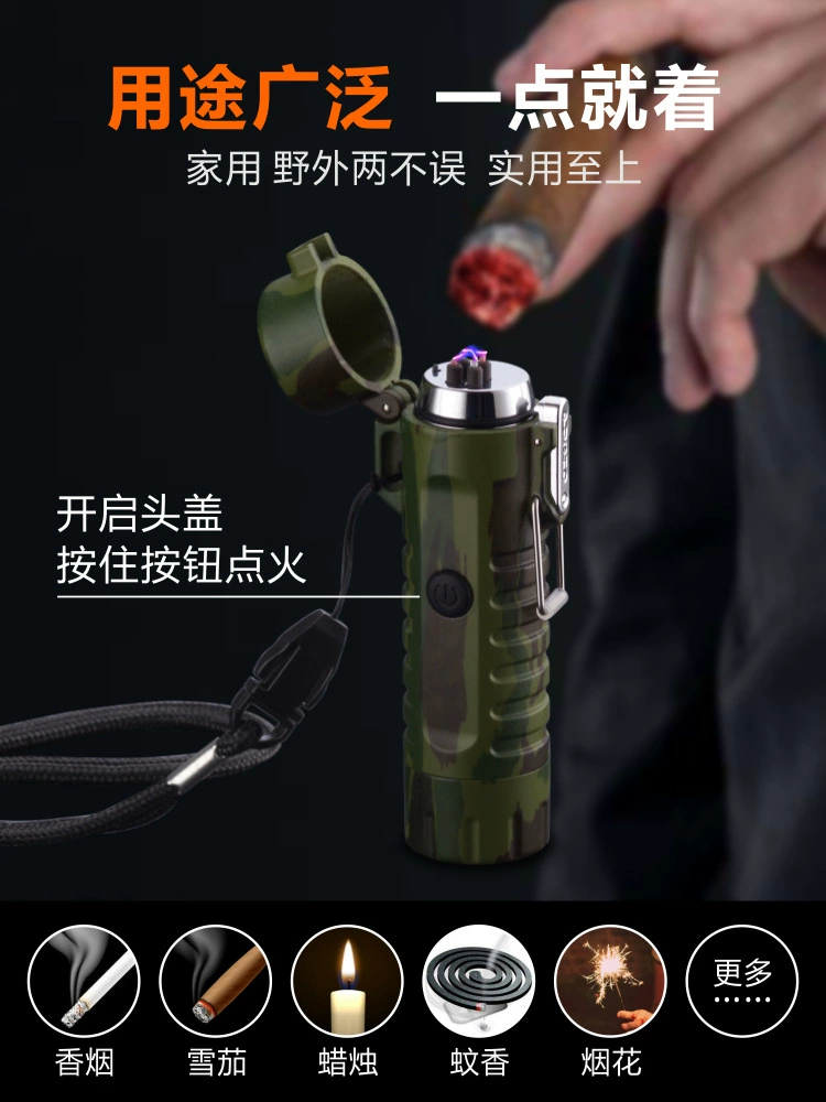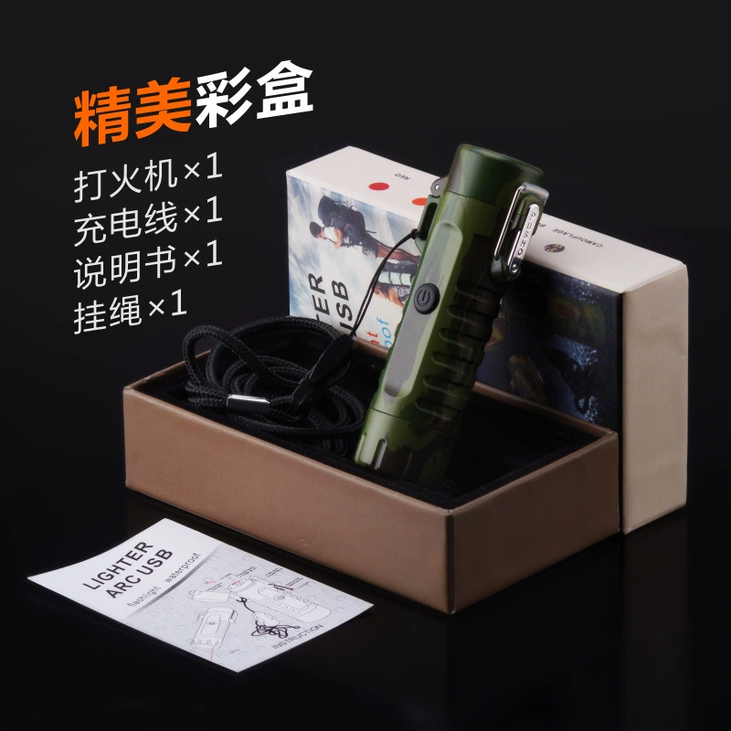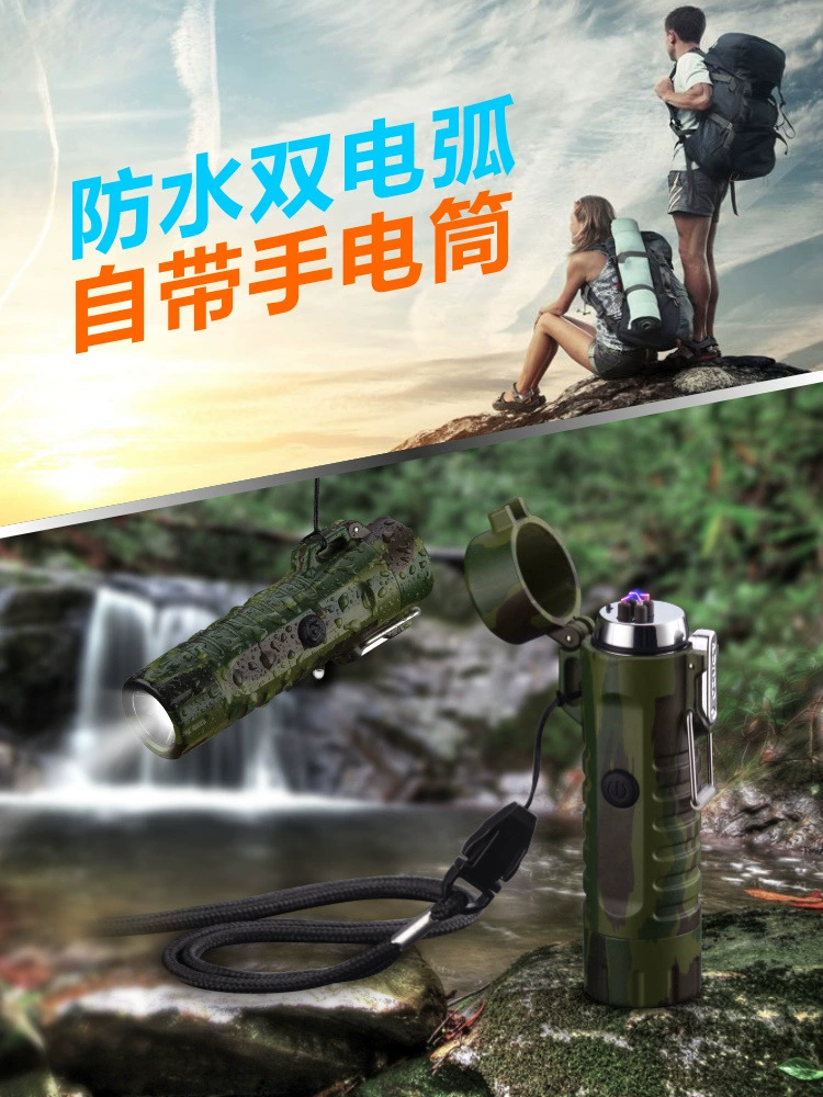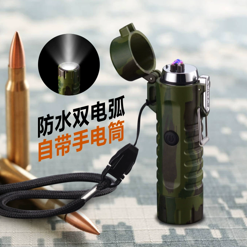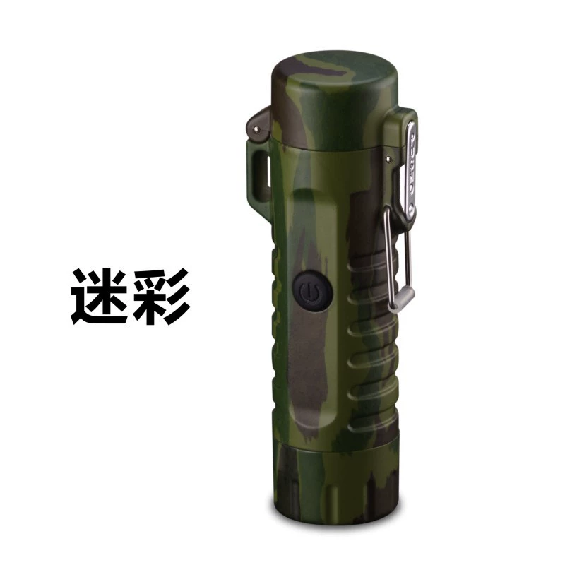 Плазменная USB-зажигалка с фонариком, камуфляжная зажигалка, водонепроницаемая ветрозащитная зажигалка с двойной дугой для мужчин, подарок для курения на кемпинге