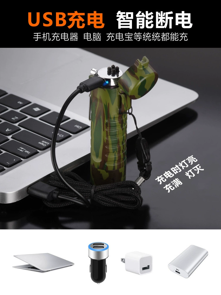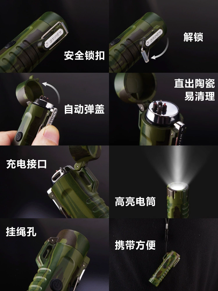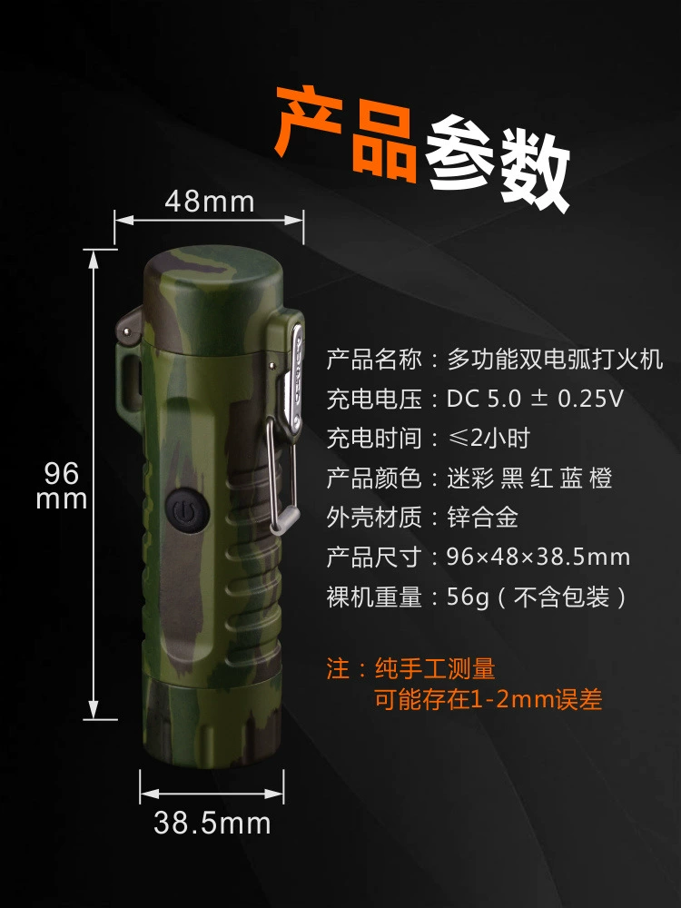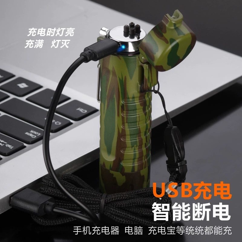 Плазменная USB-зажигалка с фонариком, камуфляжная зажигалка, водонепроницаемая ветрозащитная зажигалка с двойной дугой для мужчин, подарок для курения на кемпинге