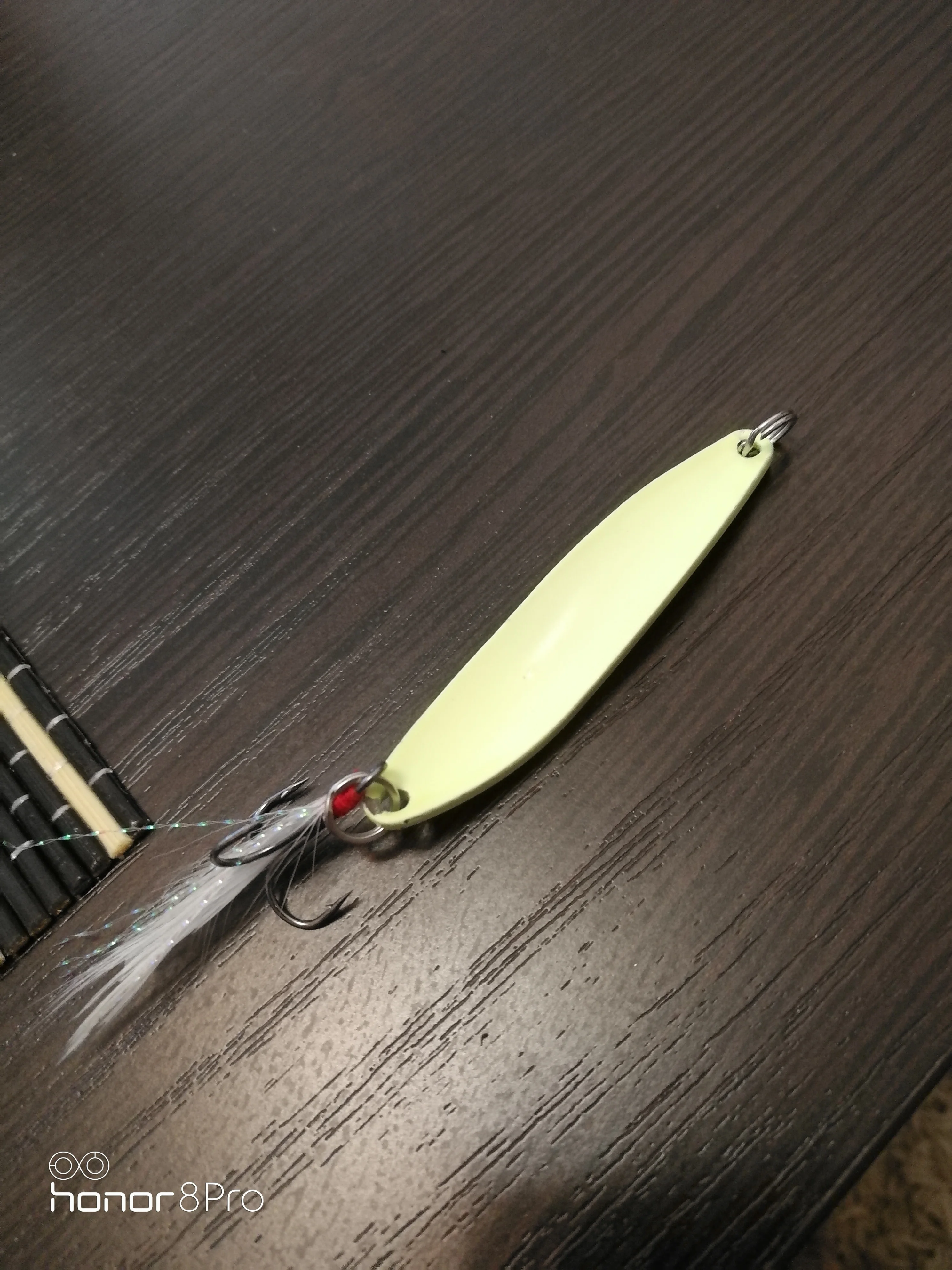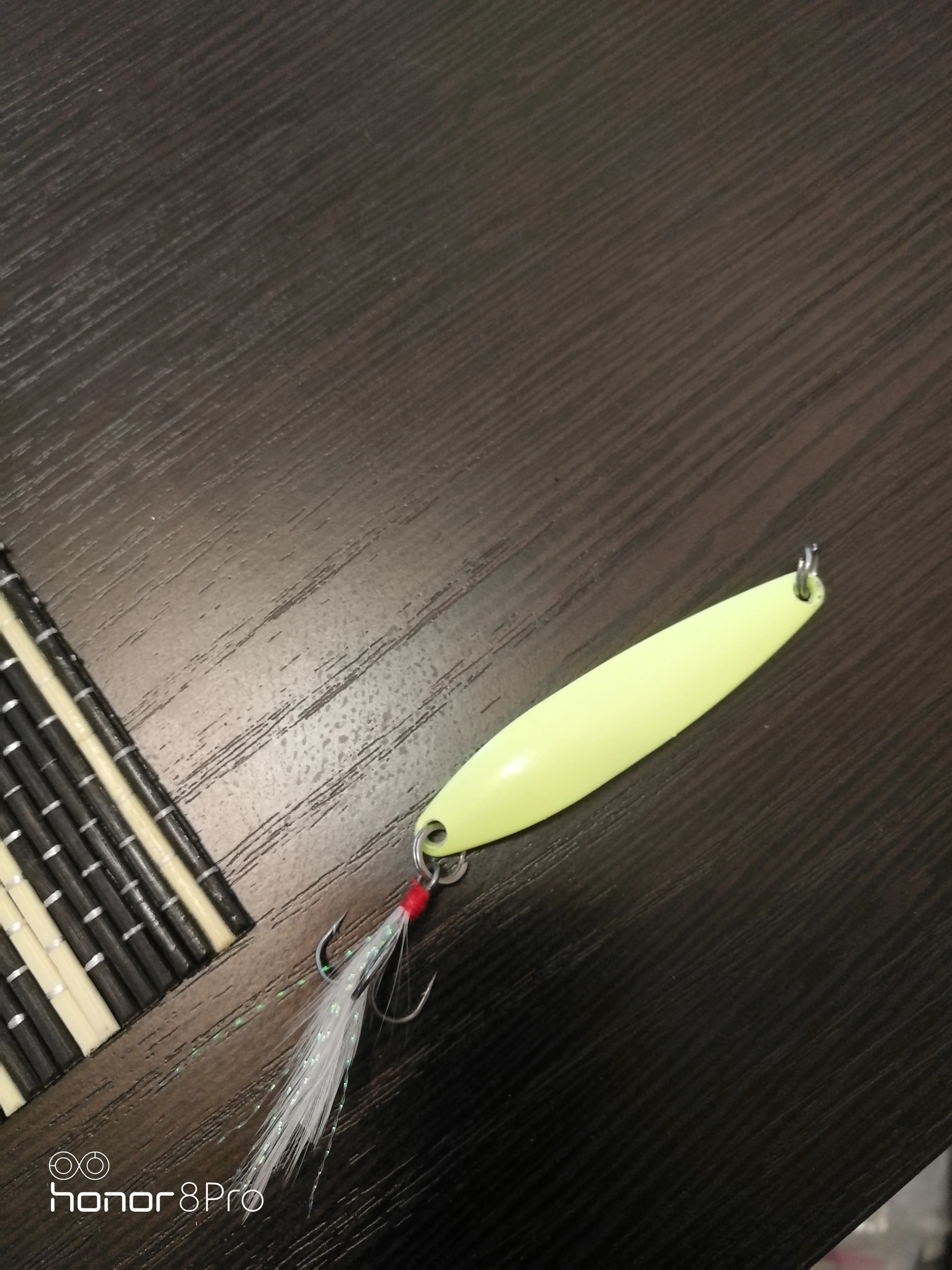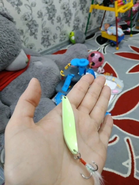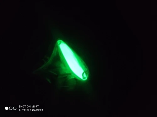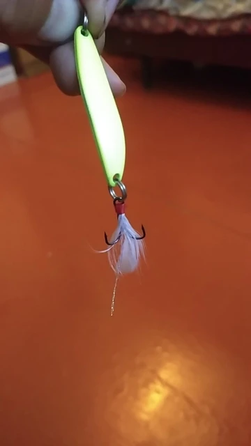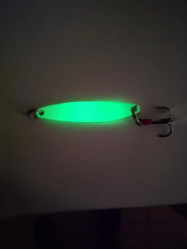 в темноте светится,крючки под замену ,на воде не пробовал