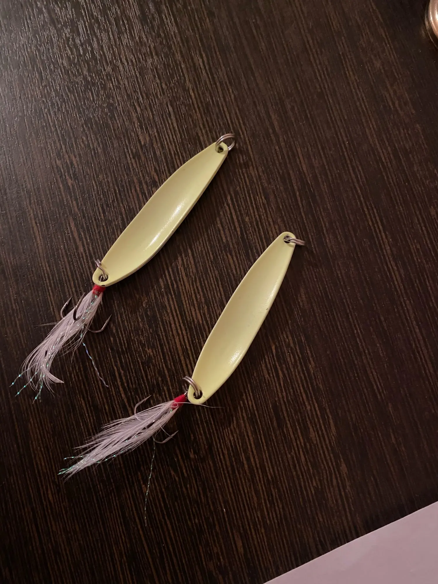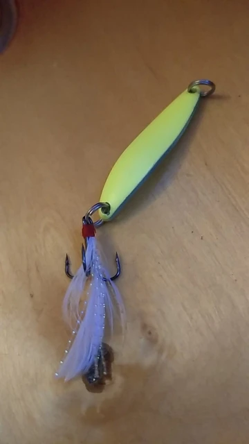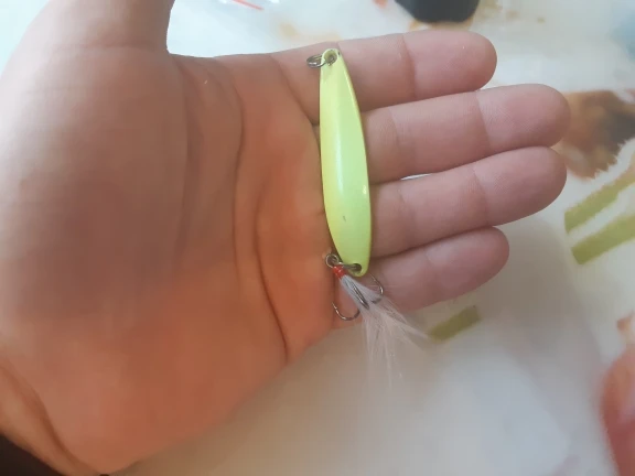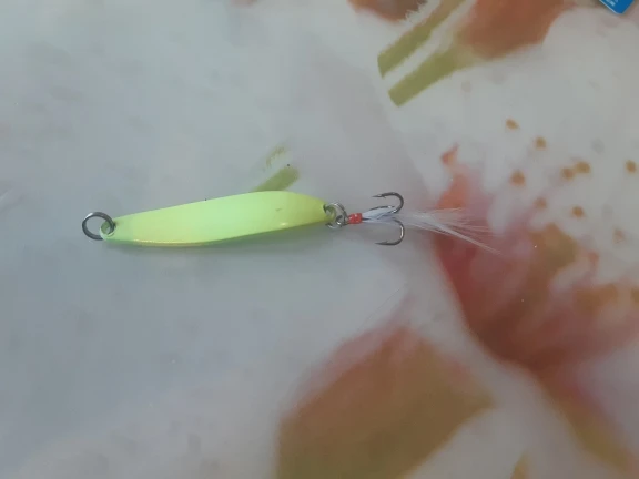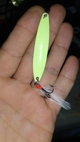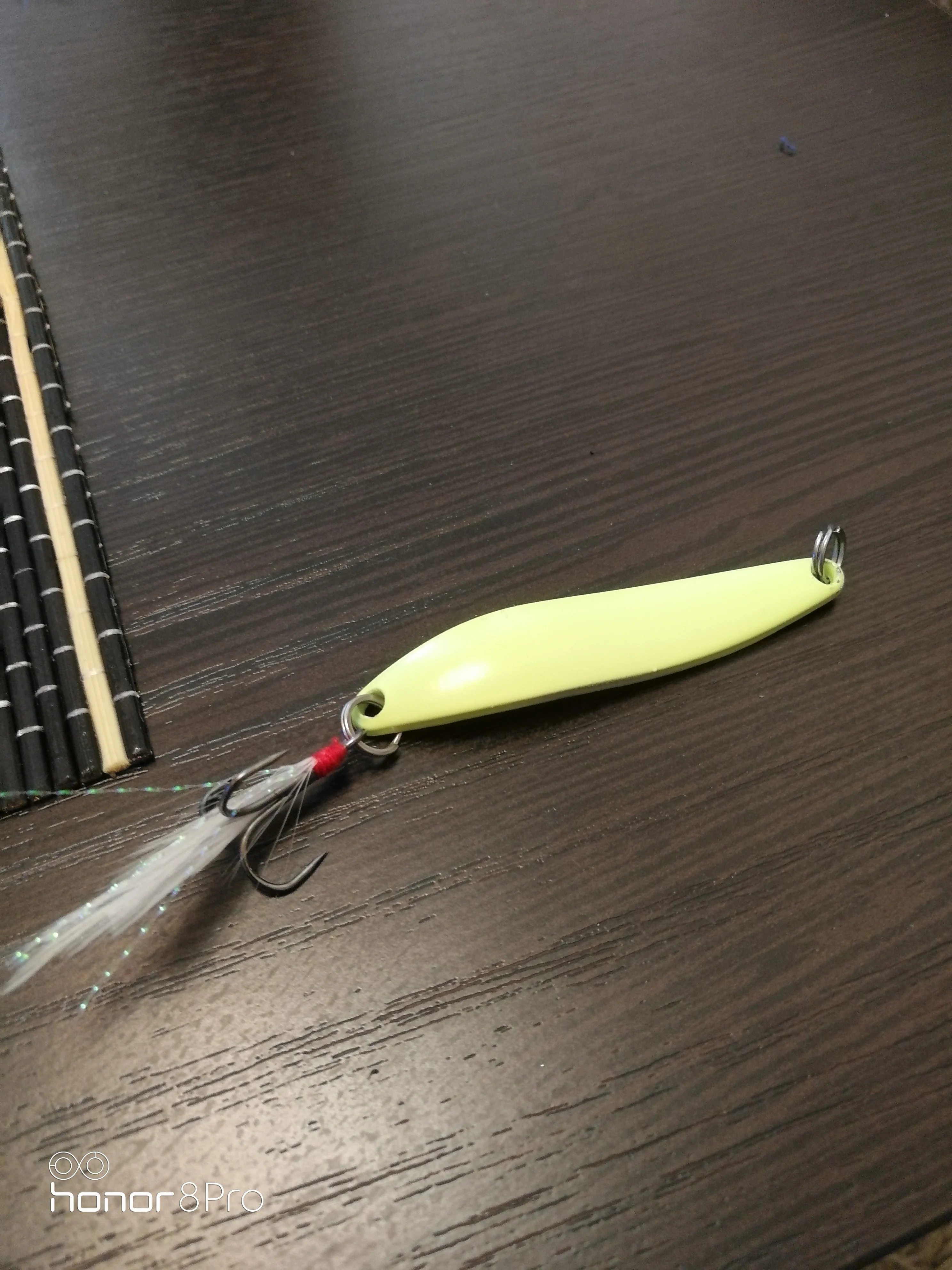 в темноте светится,крючки под замену ,на воде не пробовал
