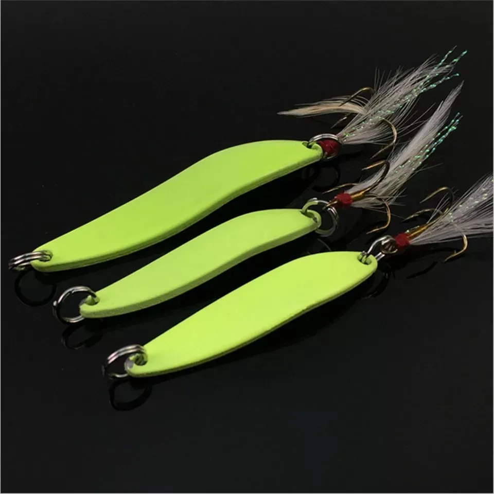 Рыболовная блесна, светящаяся, в виде ложки, 1 шт., 5g г, 7 г, 10 г, 13 г, с пером