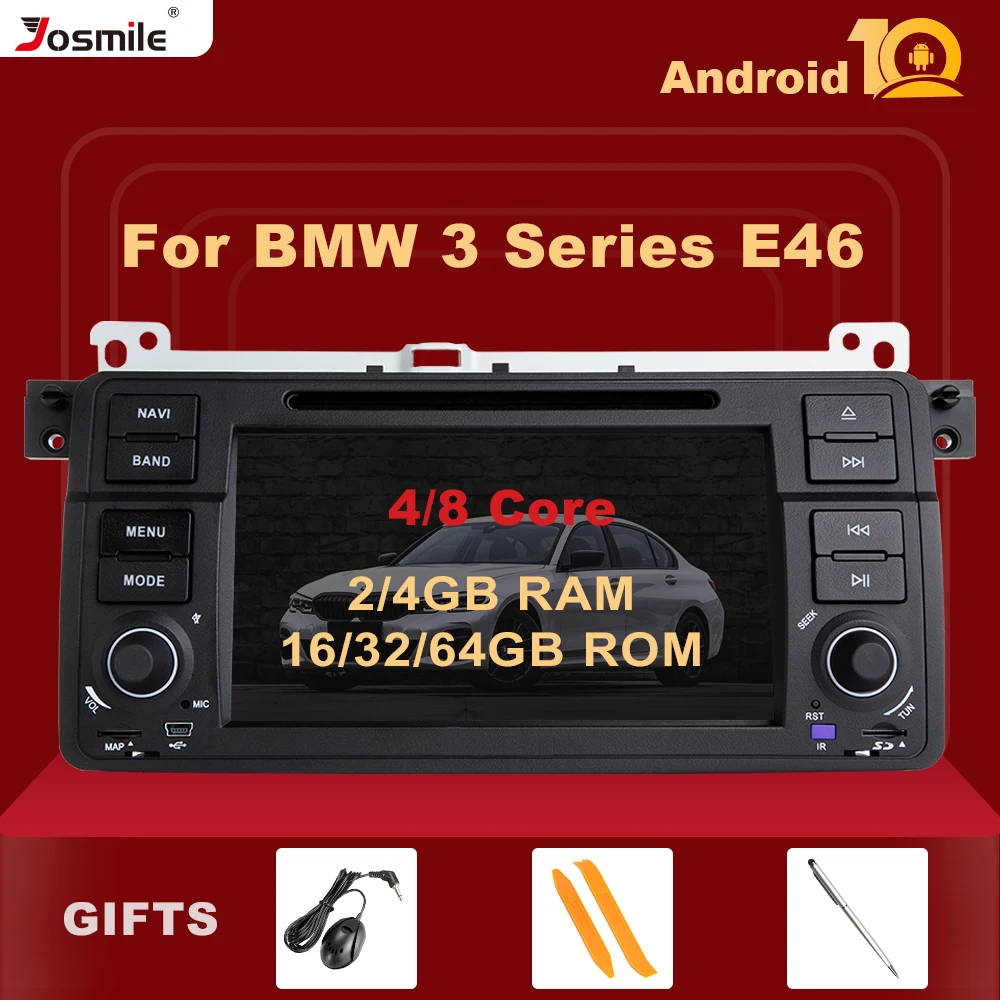 Josmile Автомагнитола 1 Din Android 10 автомобильный DVD-плеер для BMW E46 M3 Rover 75 Coupe 318320325330335 GPS-навигация 1998-2006 4G