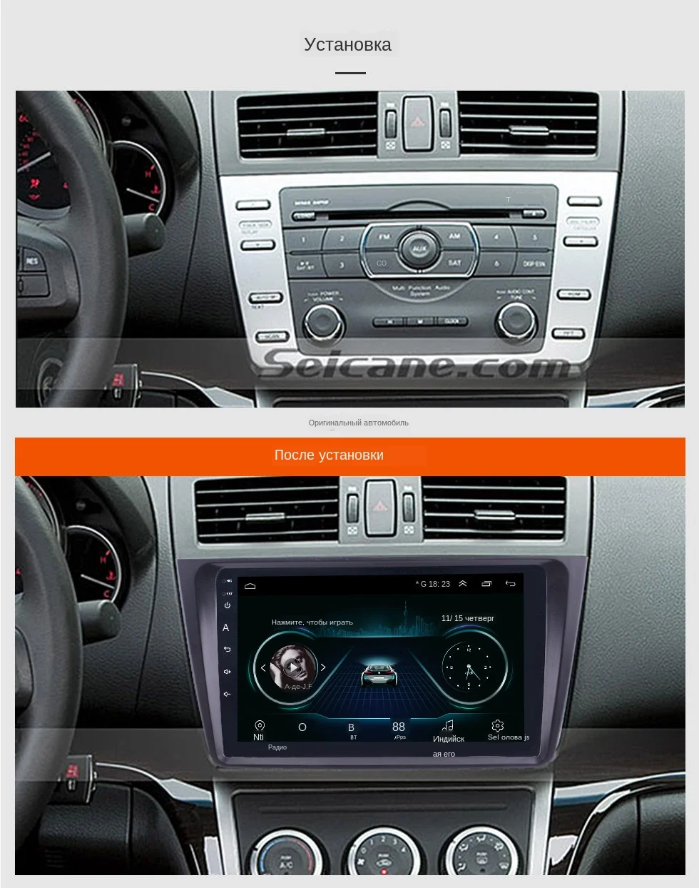 Всем пт ! Решил поменять мафон штатный ) бесило что нет флешки и бт! Пользоваться всякими проводами или переходниками нет ни какого желания ))) пришлось заказать с али ) шло около месяца дошел целый нормальный мафон, упакован на совесть прям 2 флешки аукс блютус навигация вообщем я доволен покупкой! Брал средний не самый плохой но и не самый лучший ! 2 гб оперы 32 памяти ) сенсор работает идеально! Музыка реально громче играет, хотя я думал это так гон какой то )) ну я его только поставил еще не разобрался, так что по ходу эксплуатации отпишусь ! единственно я не понял как заставку поменять при вкл что б мазда светилась) может кто скажет ?